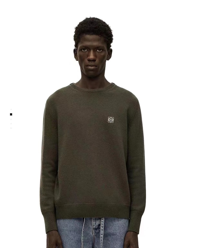 セリーヌメンズクルーネックカーキニットe222