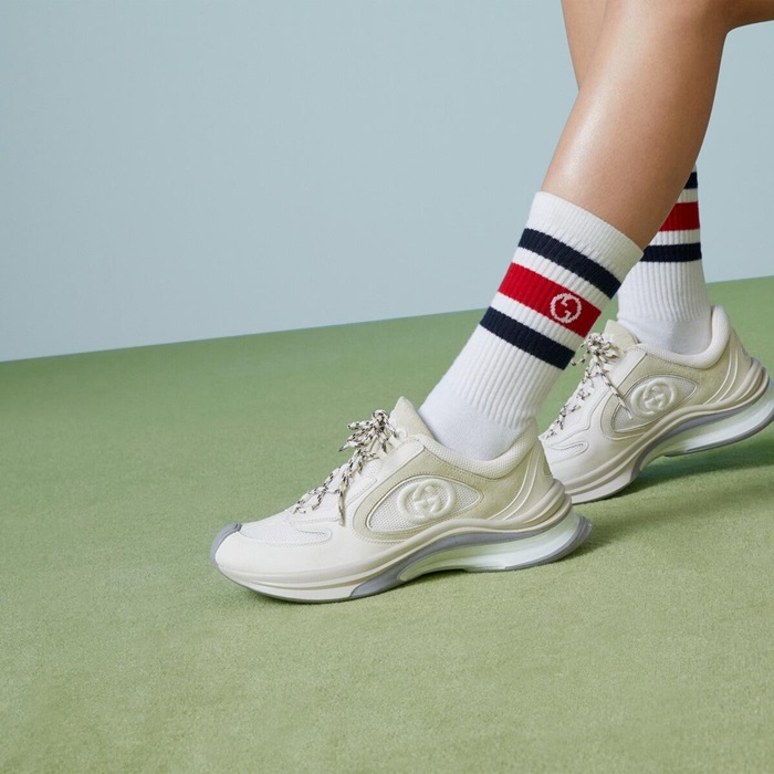 グッチレディースランホワイトスエードスニーカーu1047