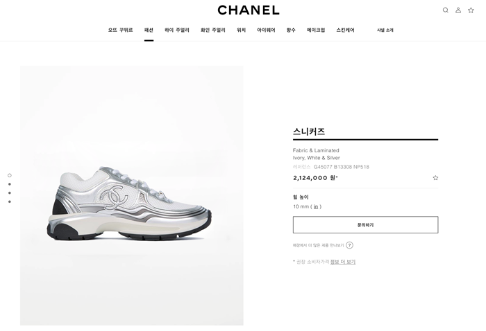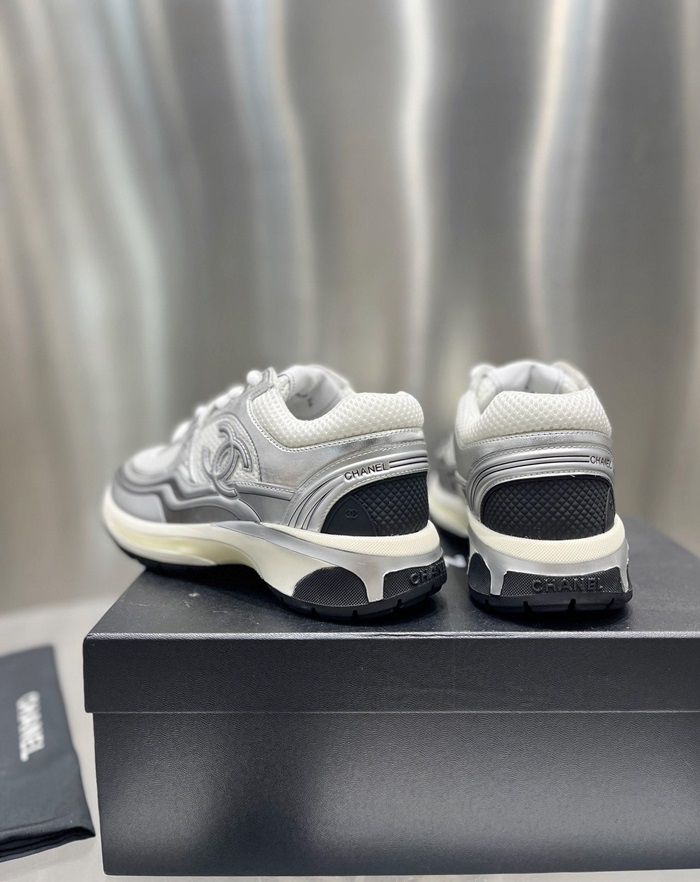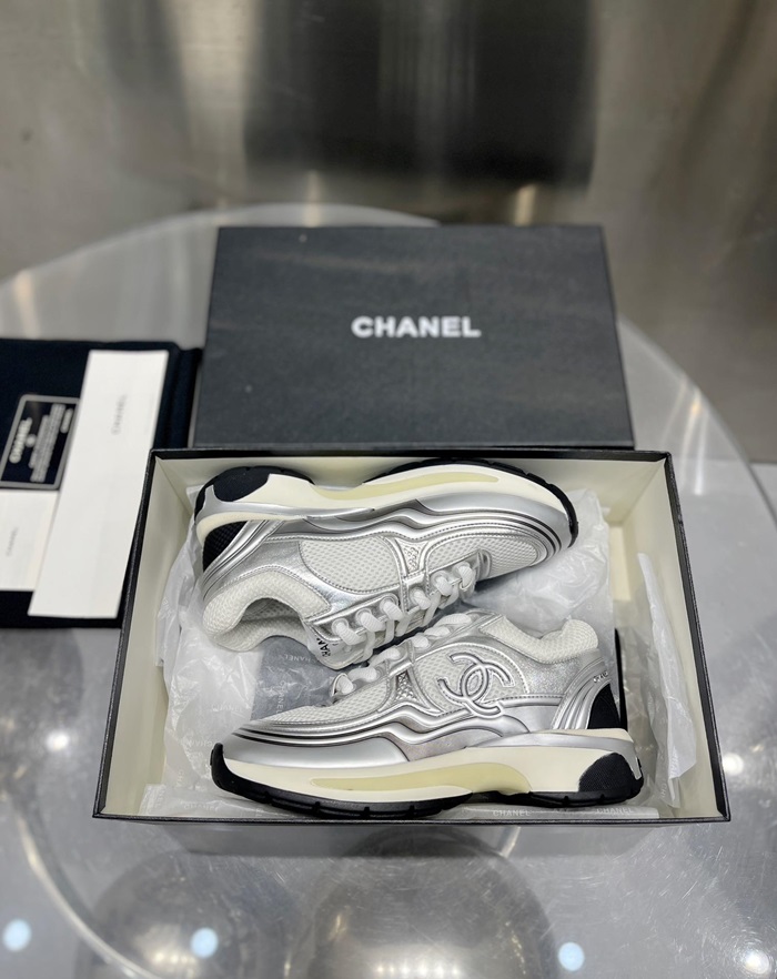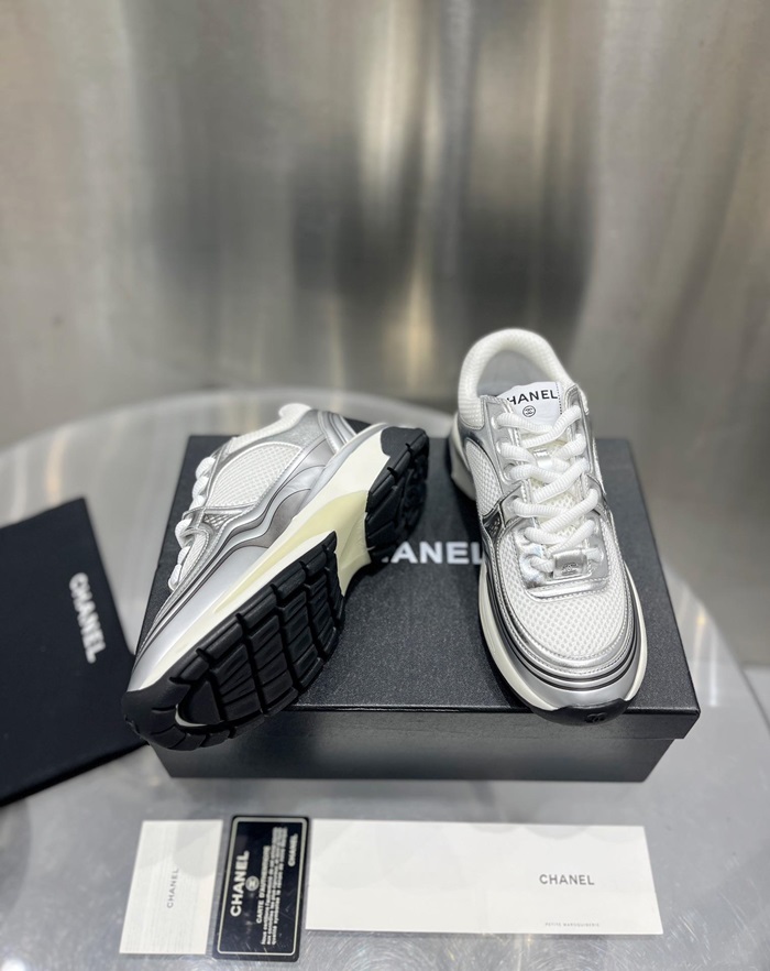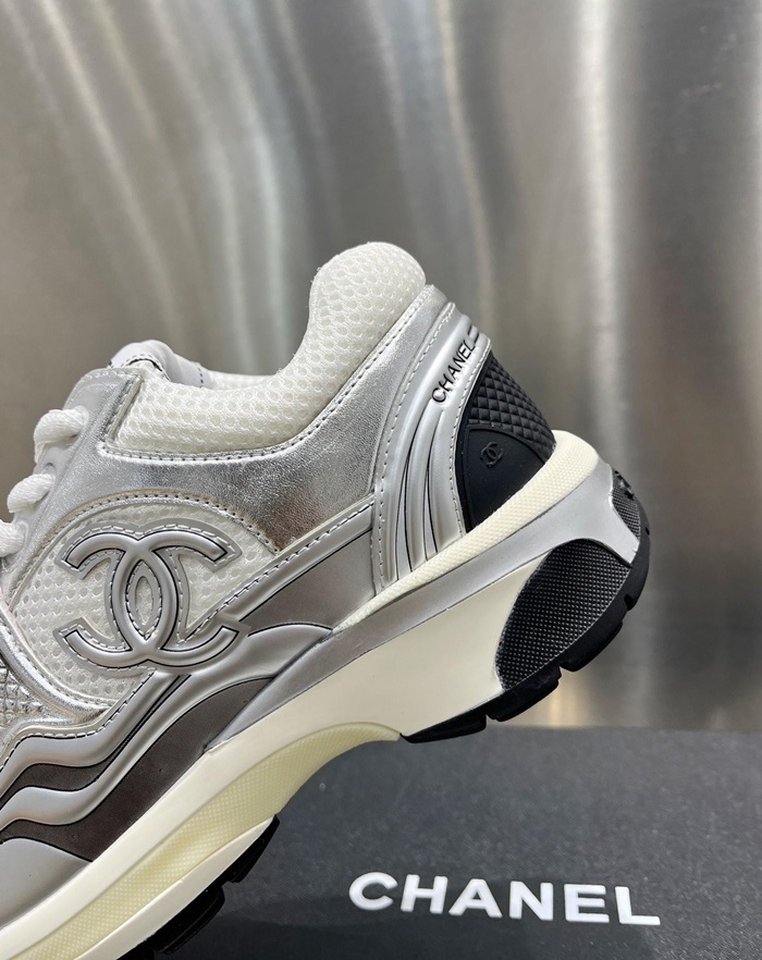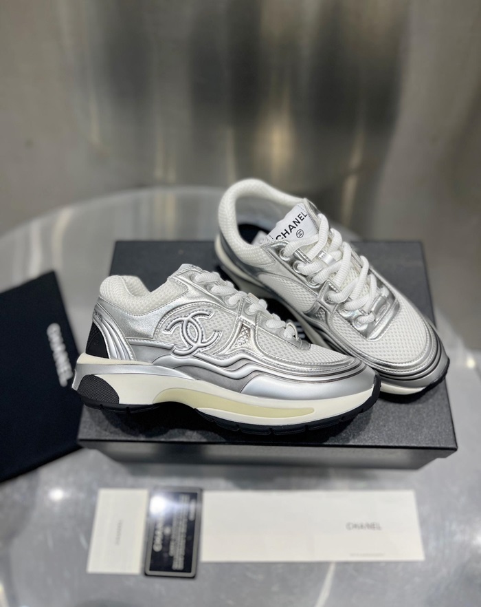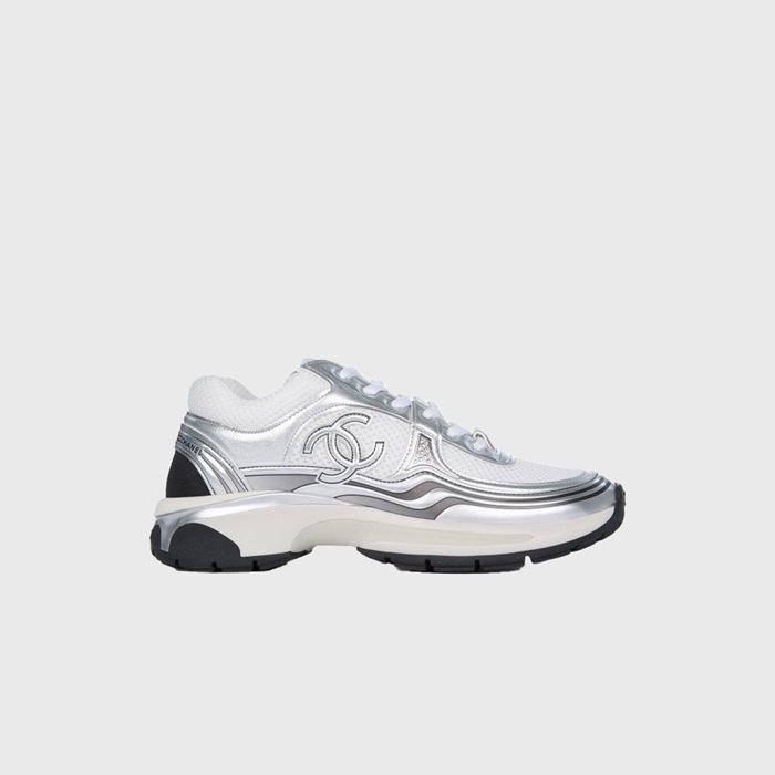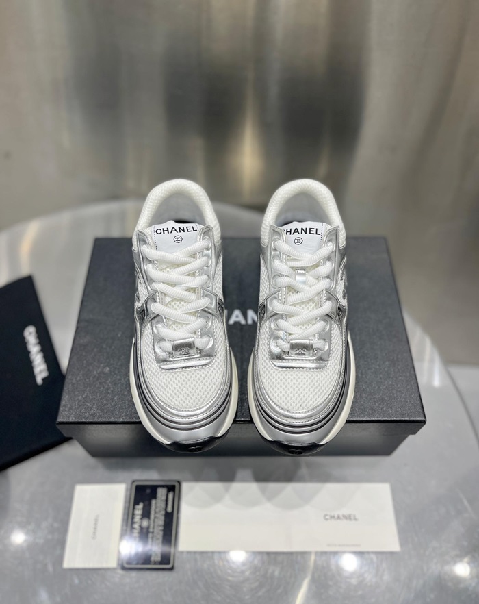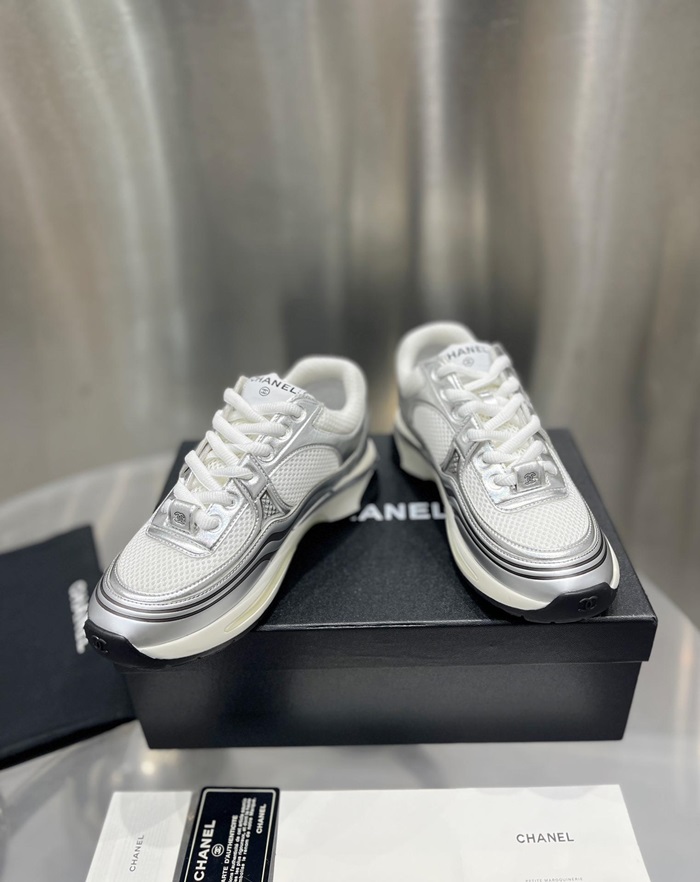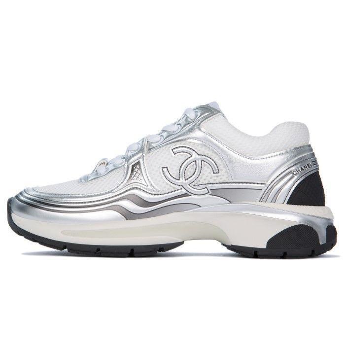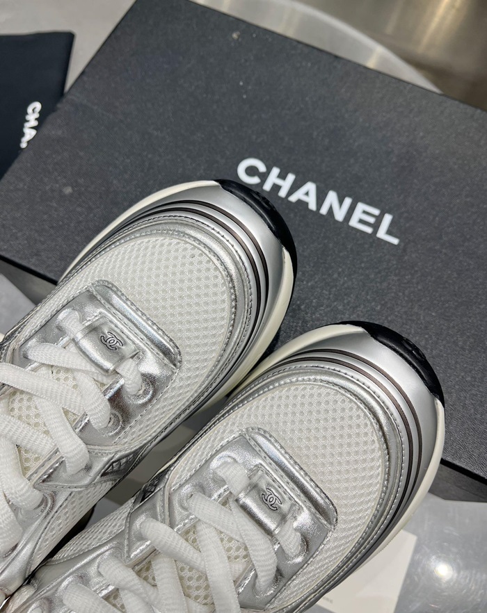 シャネルレディースラミネートホワイト/シルバースニーカーh534