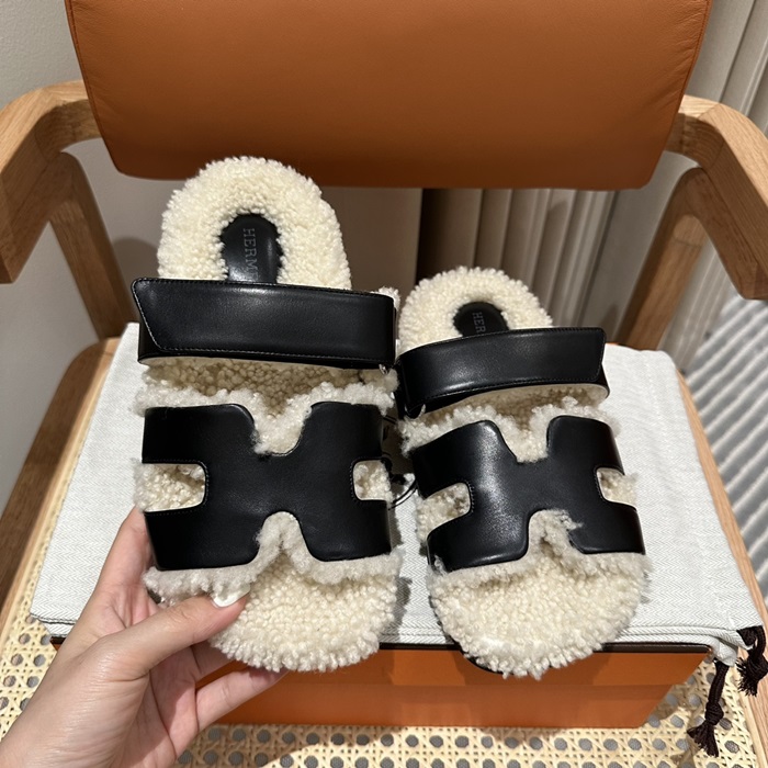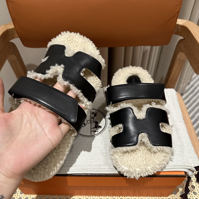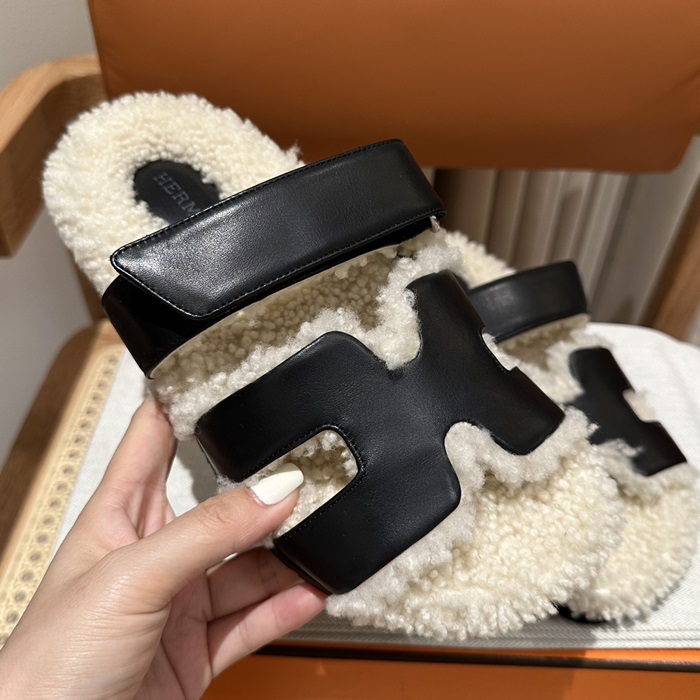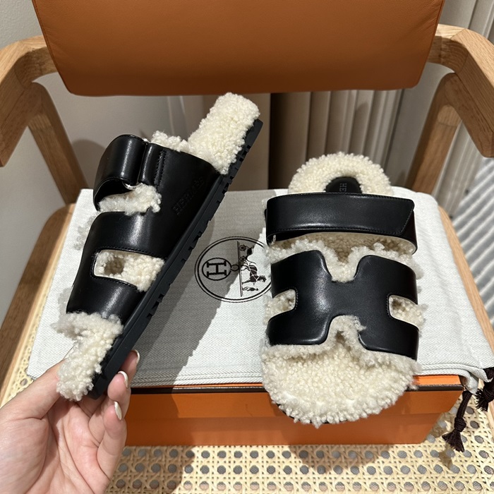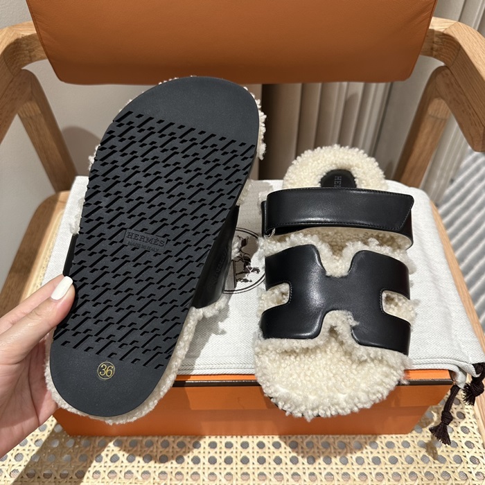 エルメスレディーススリッパウールスキンサンダルe382