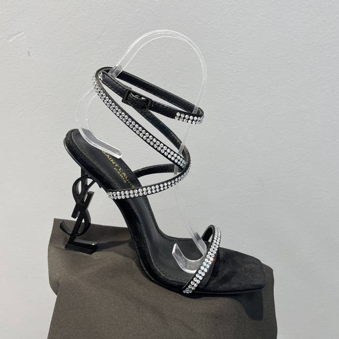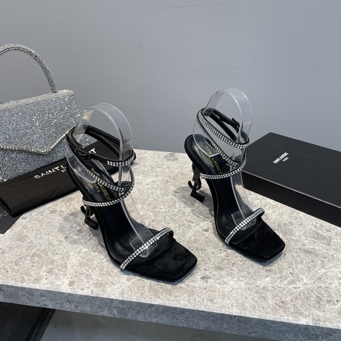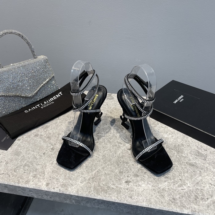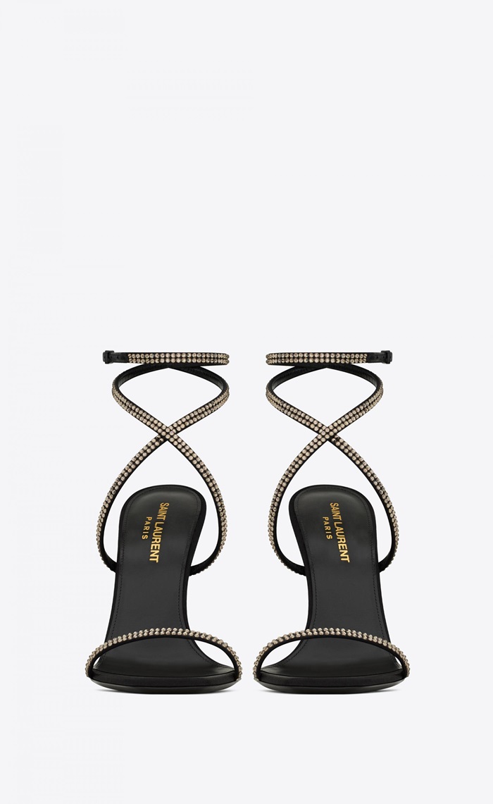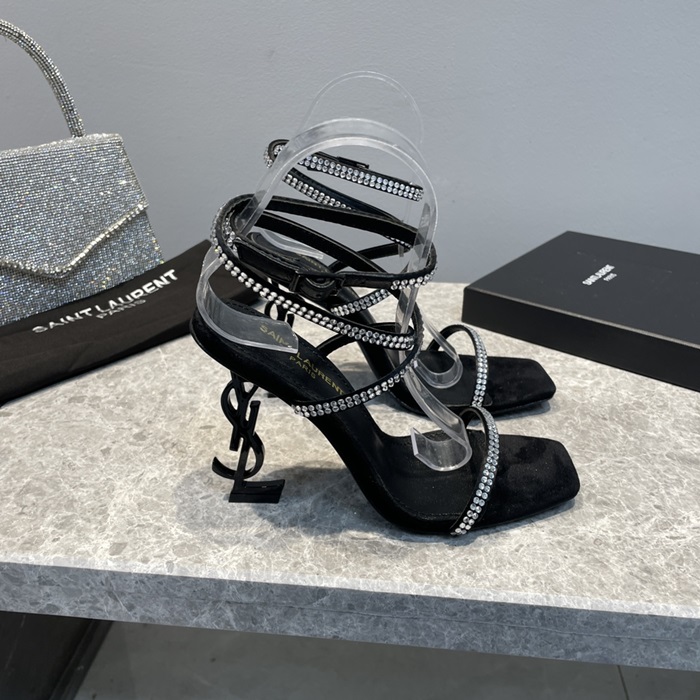 クレープレディースサテンラインストーンシルバーヒールサンダルl429