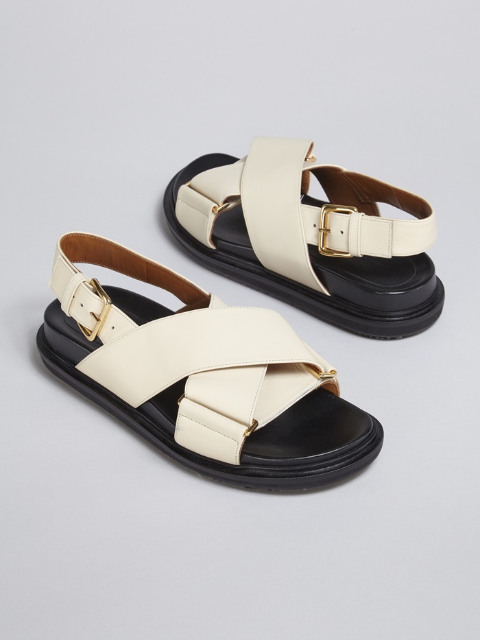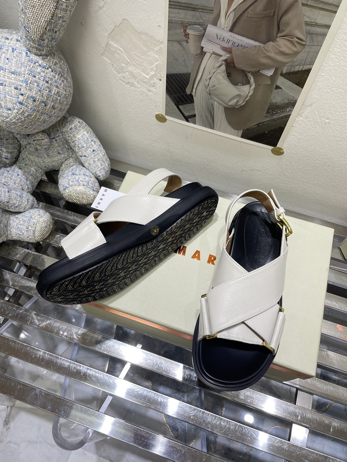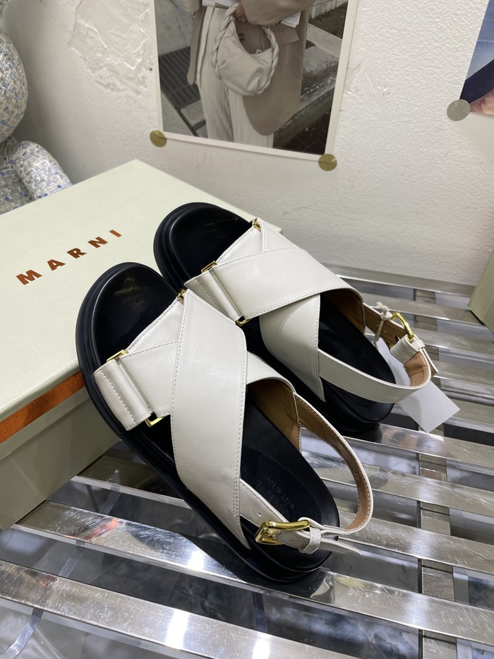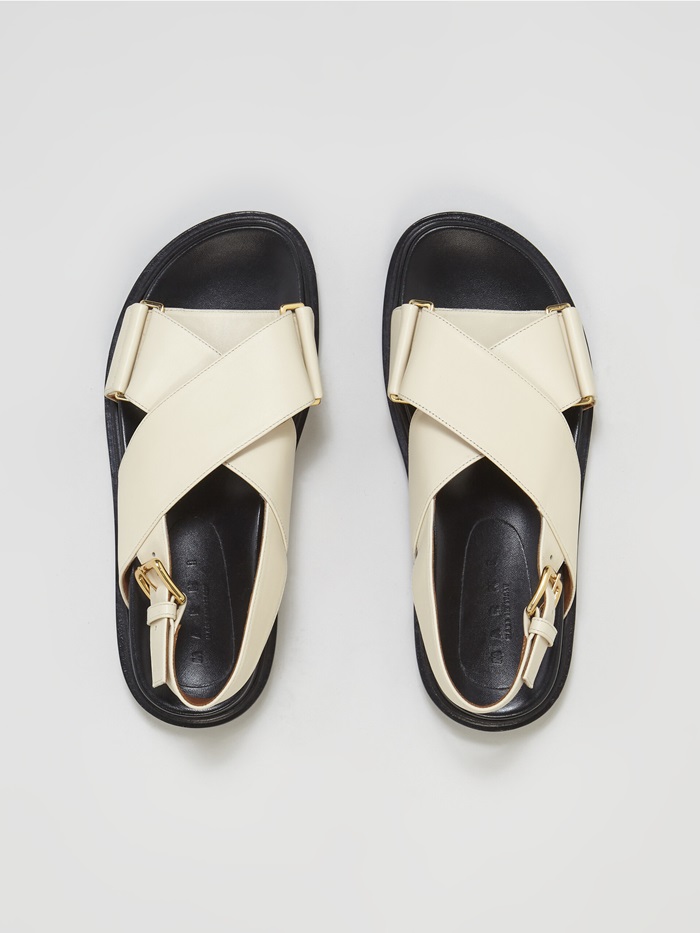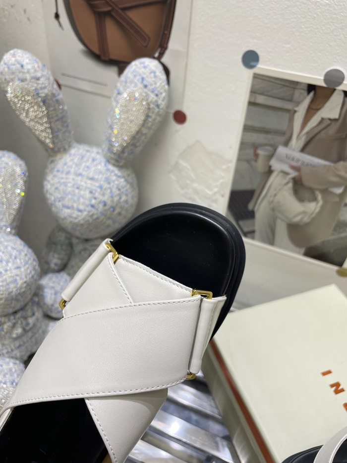 マルニレディースホワイトレザークリスクロスサンダルa20