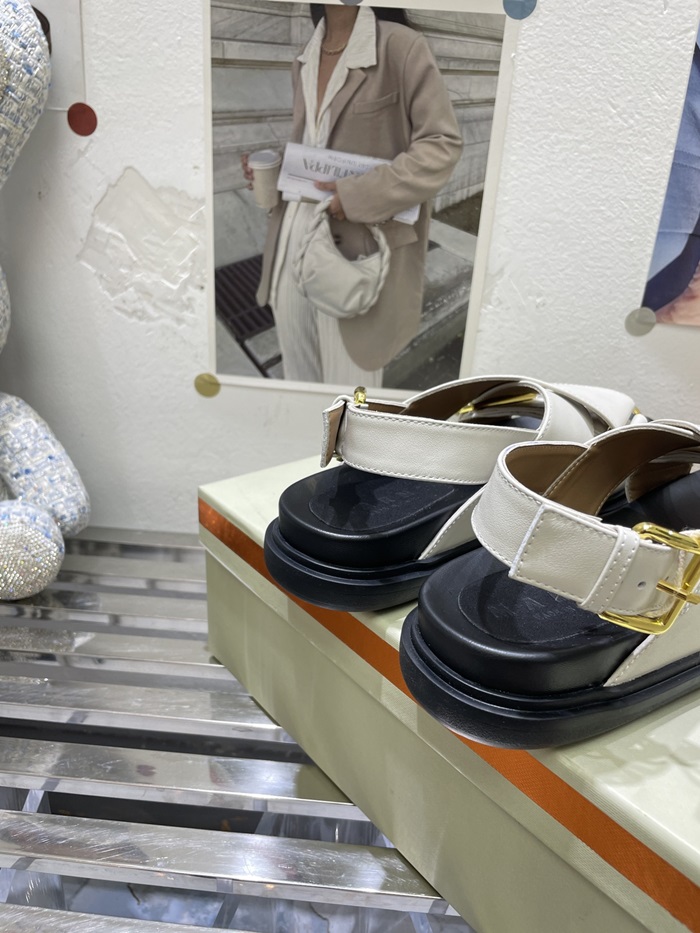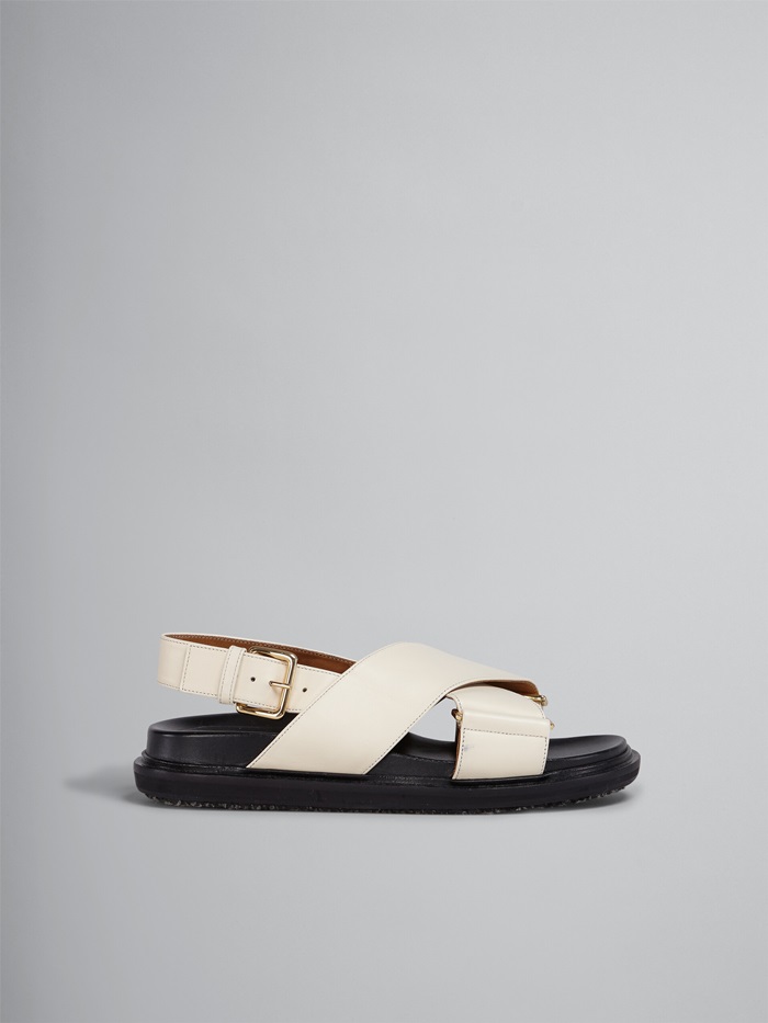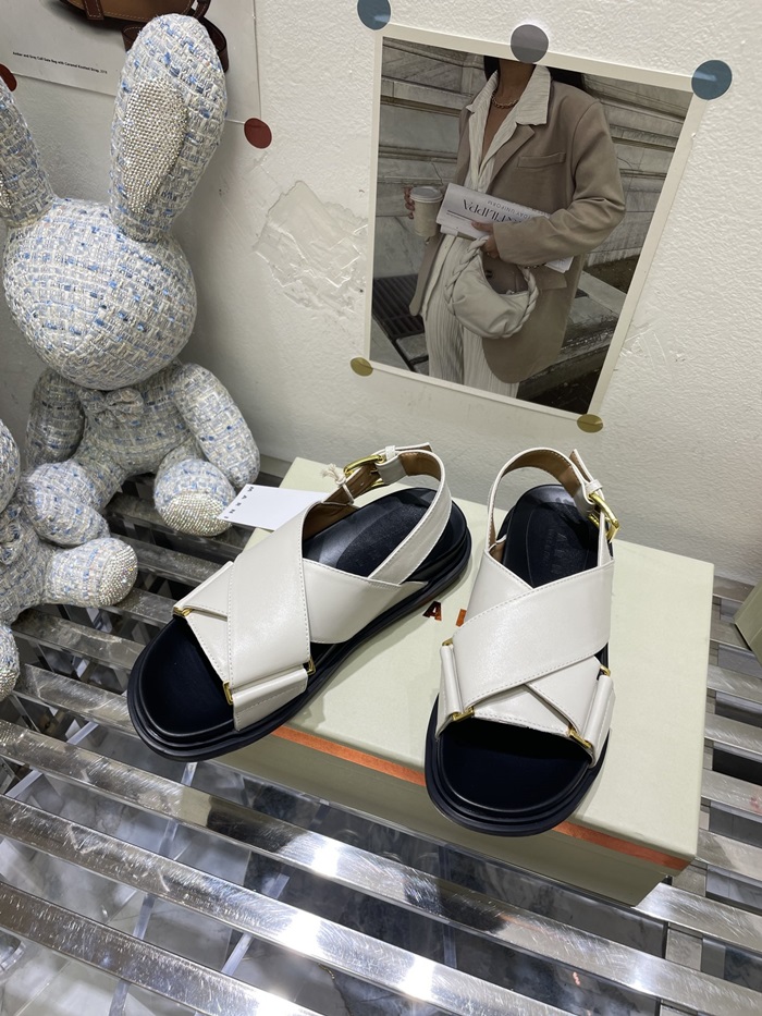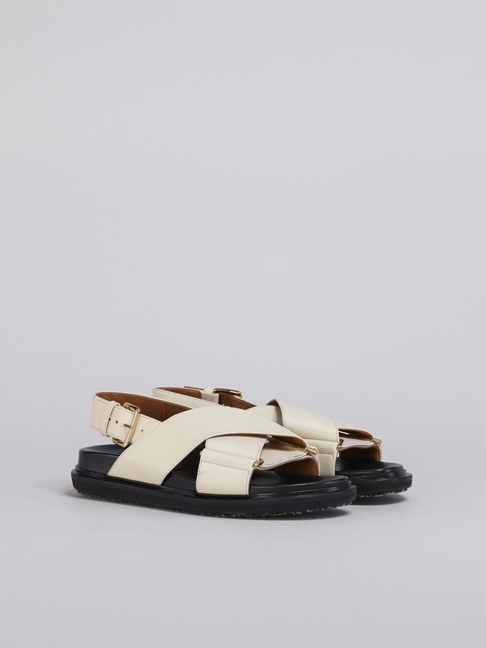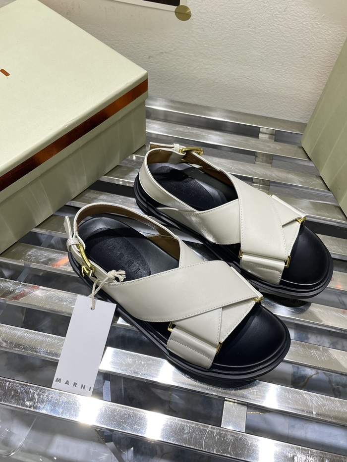 マルニレディースホワイトレザークリスクロスサンダルa20