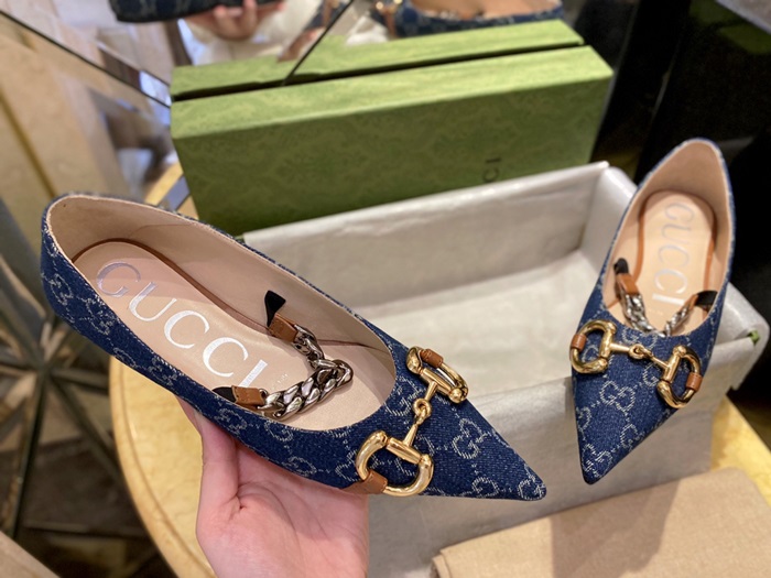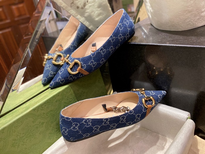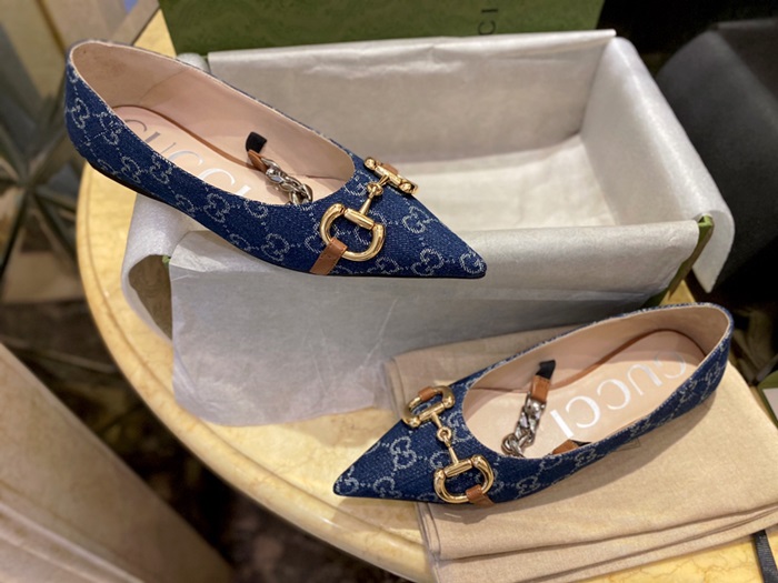 グッチレディースデニムホースビットフラットシューズ6351012u1074