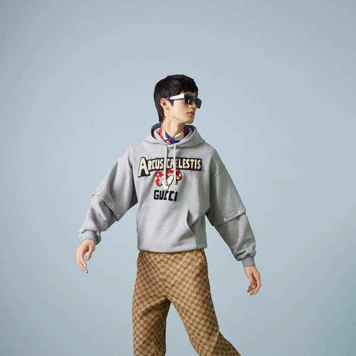 グッチメンズグレーフーディu1082