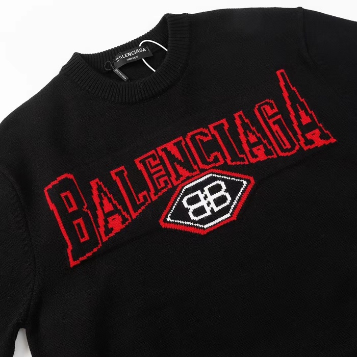 バレンシアガメンズブラッククルーネックニットa718