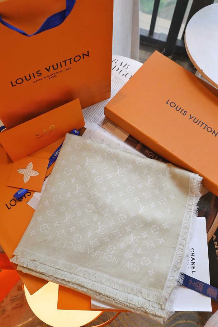 ルイヴィトンレディースベージュマフラーv1978