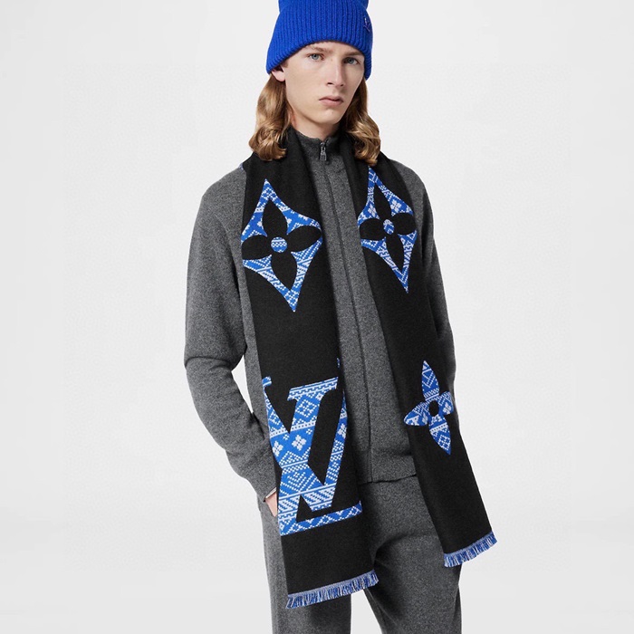 ルイヴィトンメンズブラックマフラーv1986