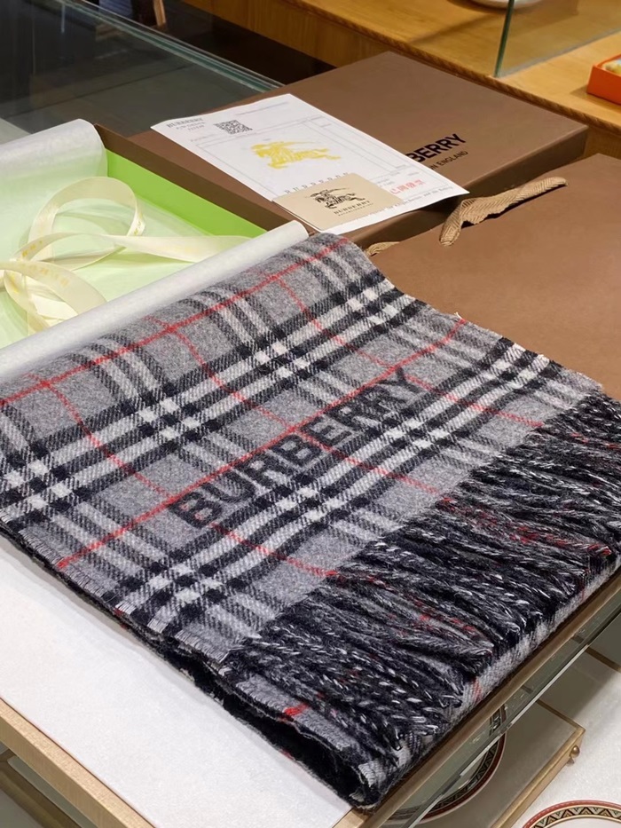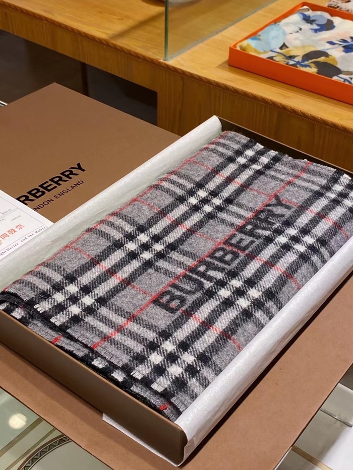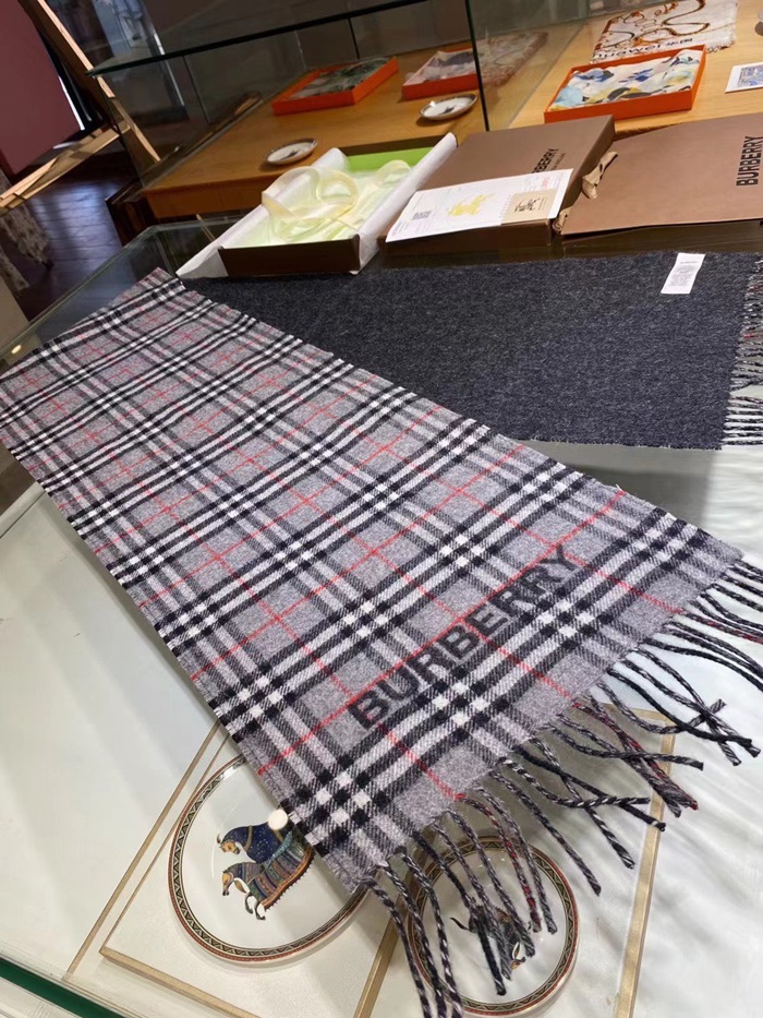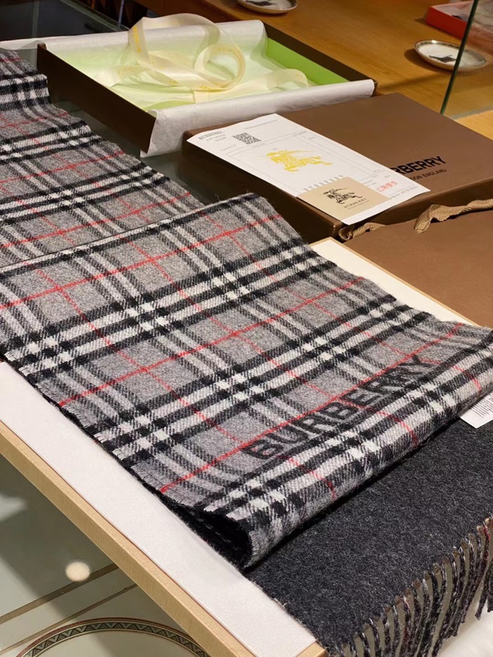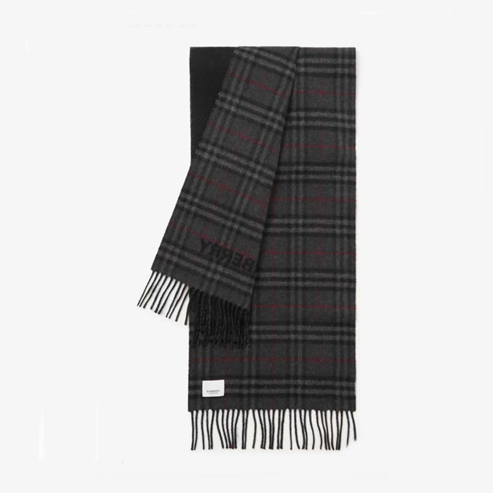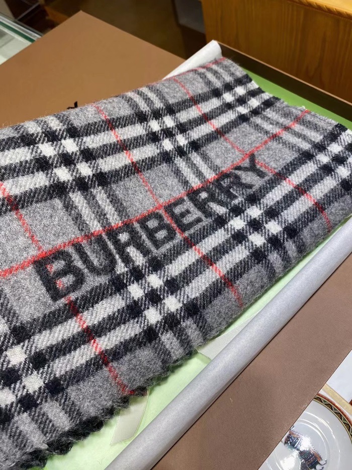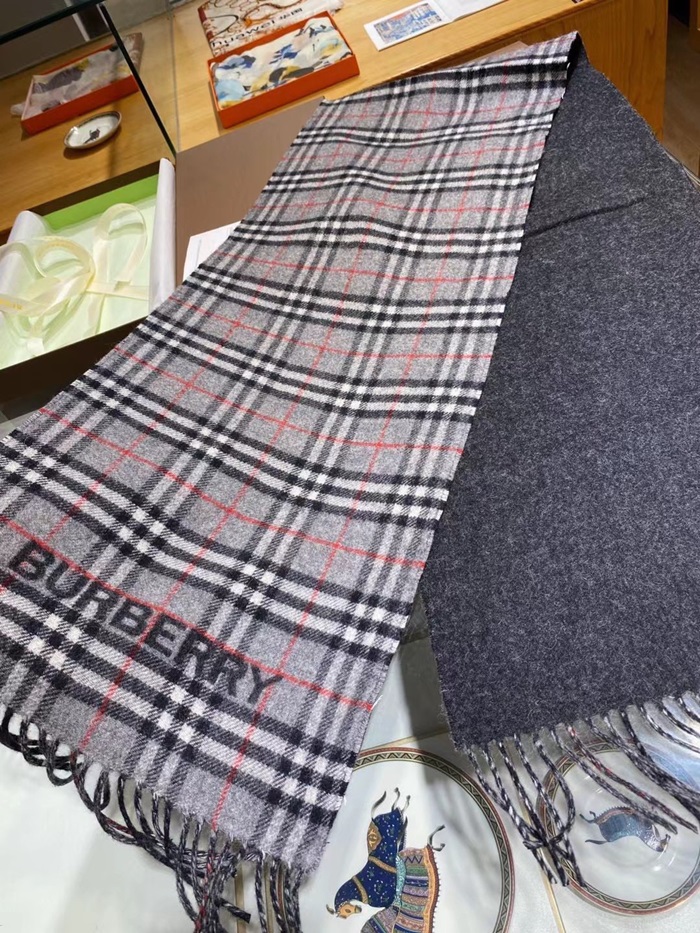 バーバリーメンズグレー両面マフラーu316