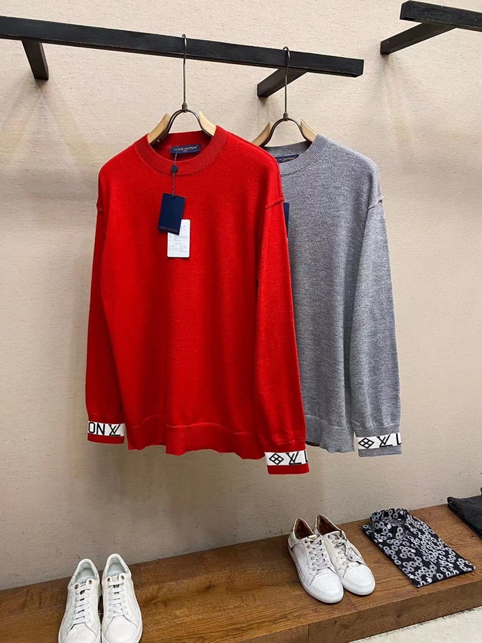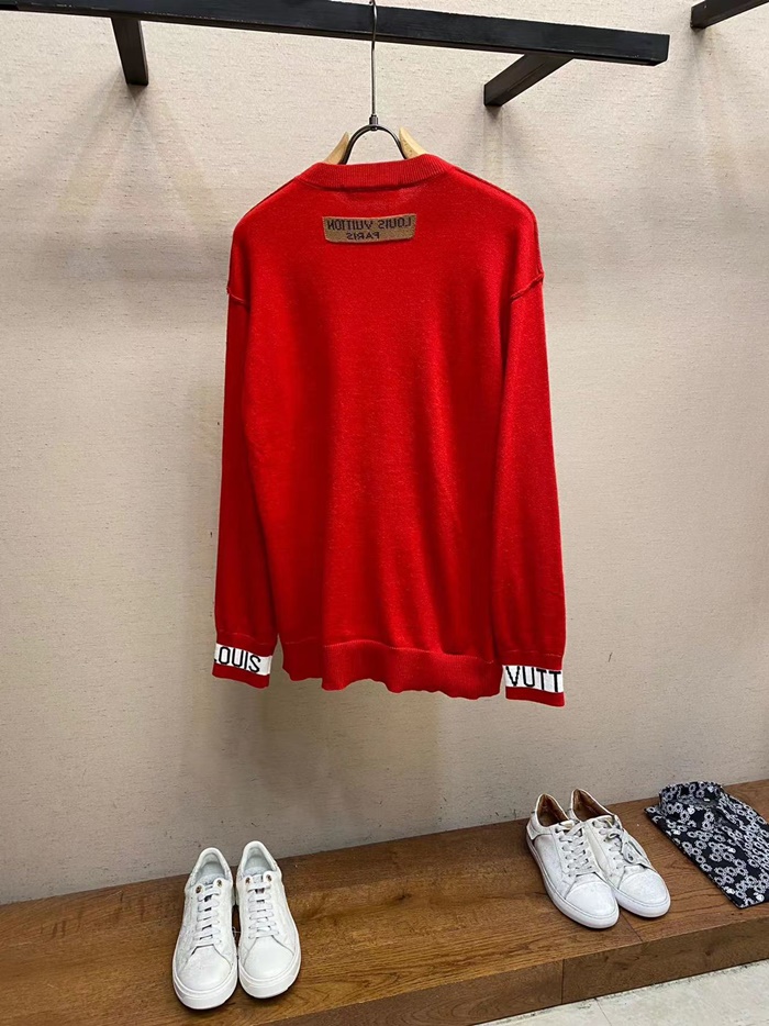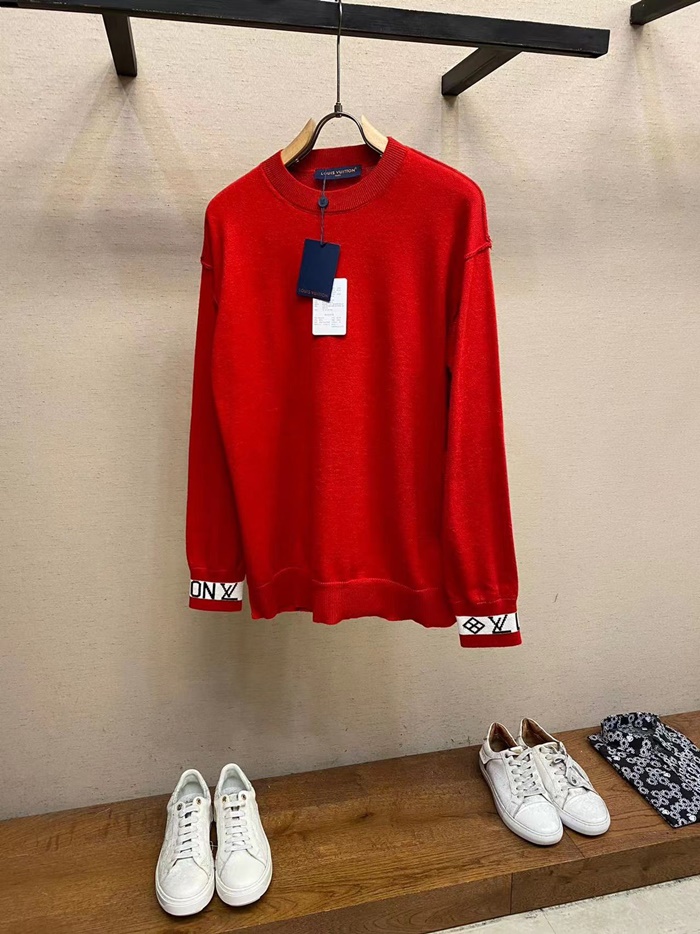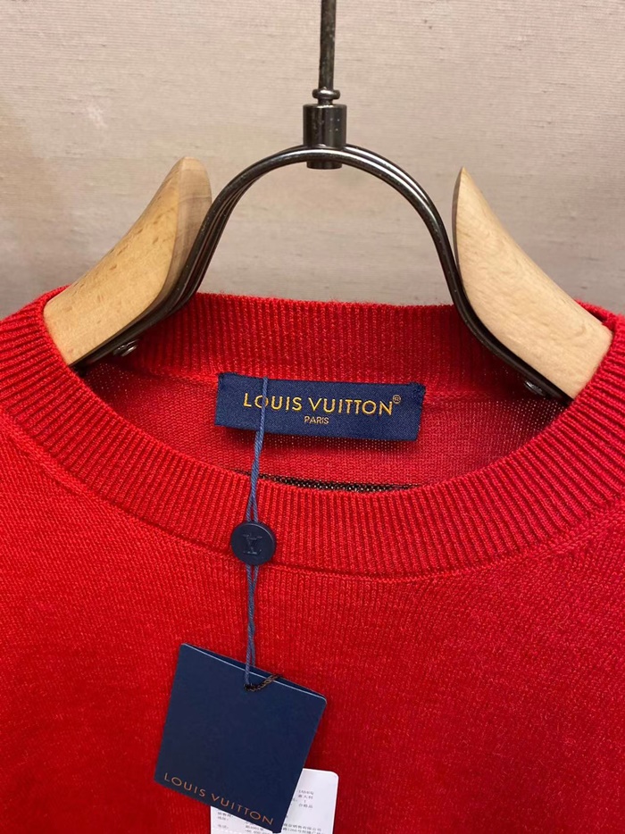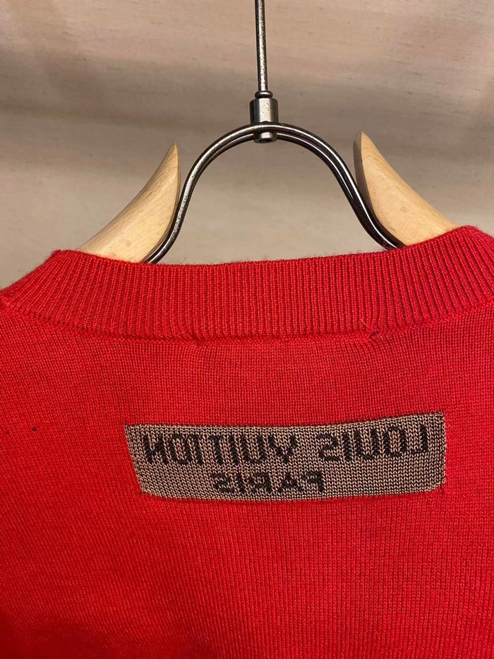 ルイヴィトンメンズレッドクルーネックニットv2011