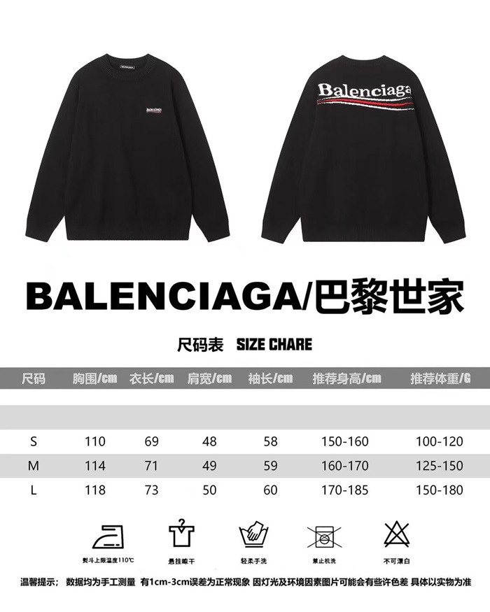 バレンシアガメンズブラッククルーネックニットa801
