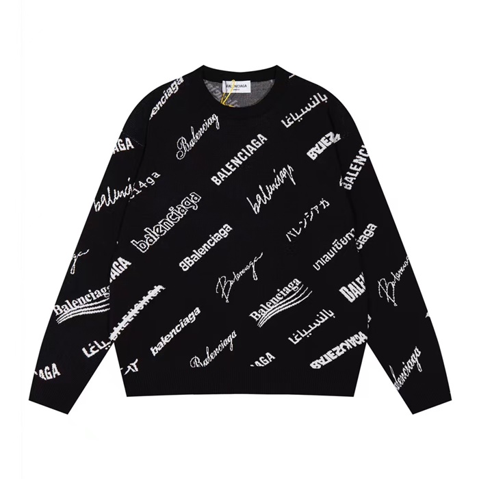 バレンシアガメンズブラッククルーネックニットa802