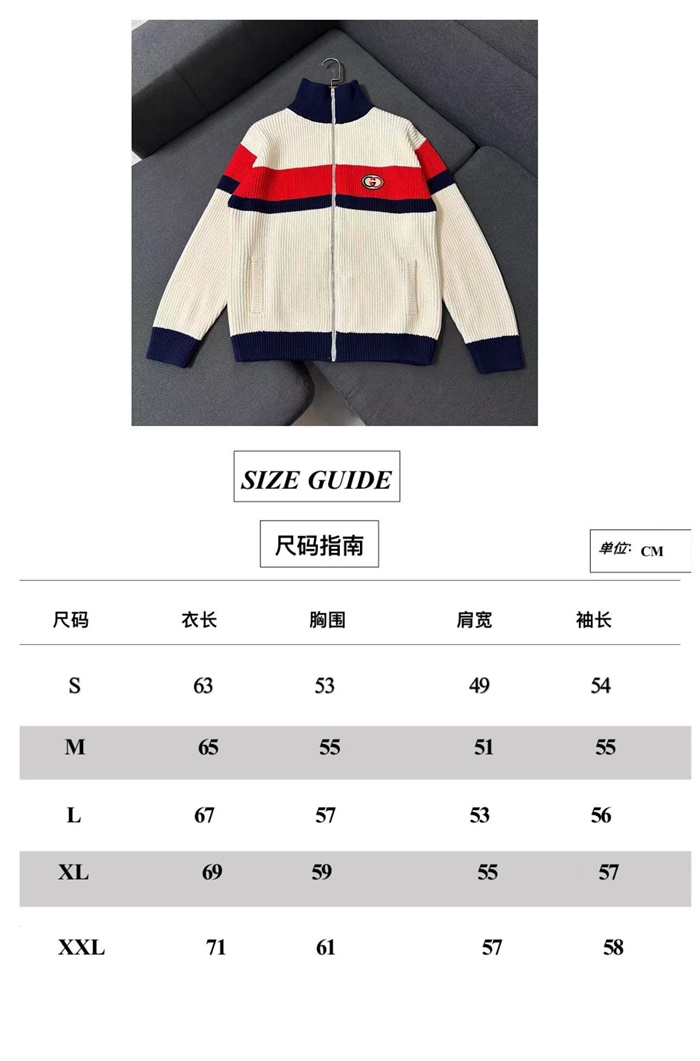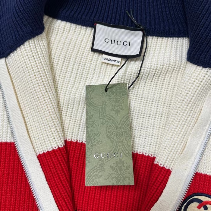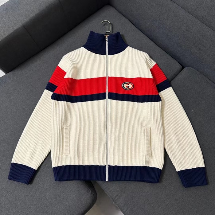 グッチメンズカジュアルホワイトニットジャケットu1106