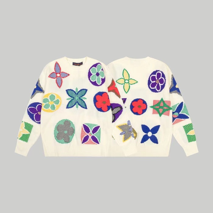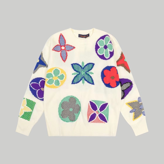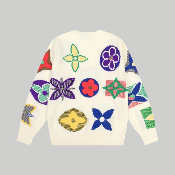 ルイヴィトンメンズホワイトクルーネックニットv