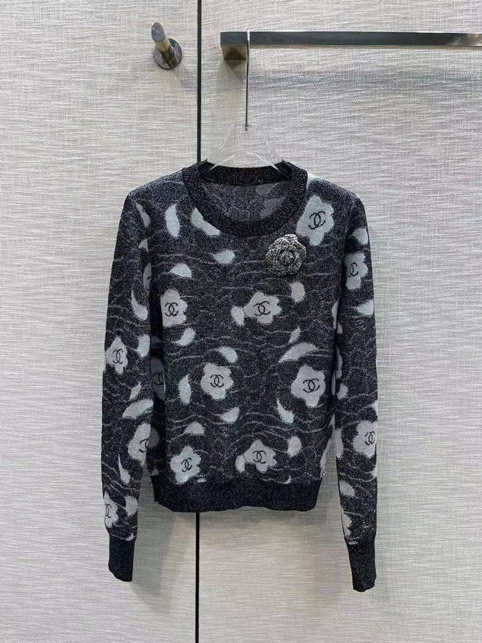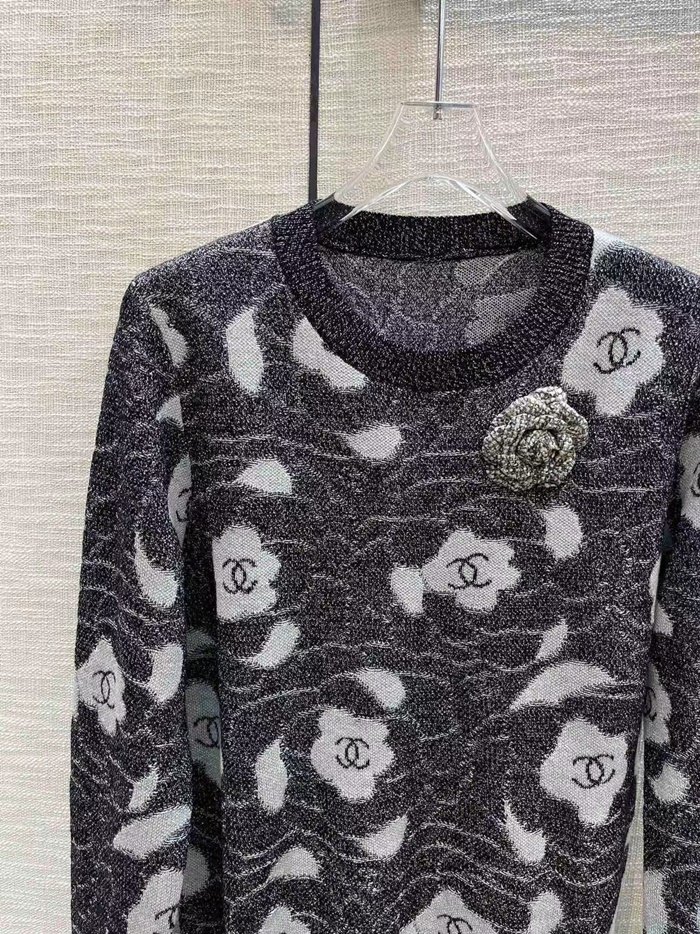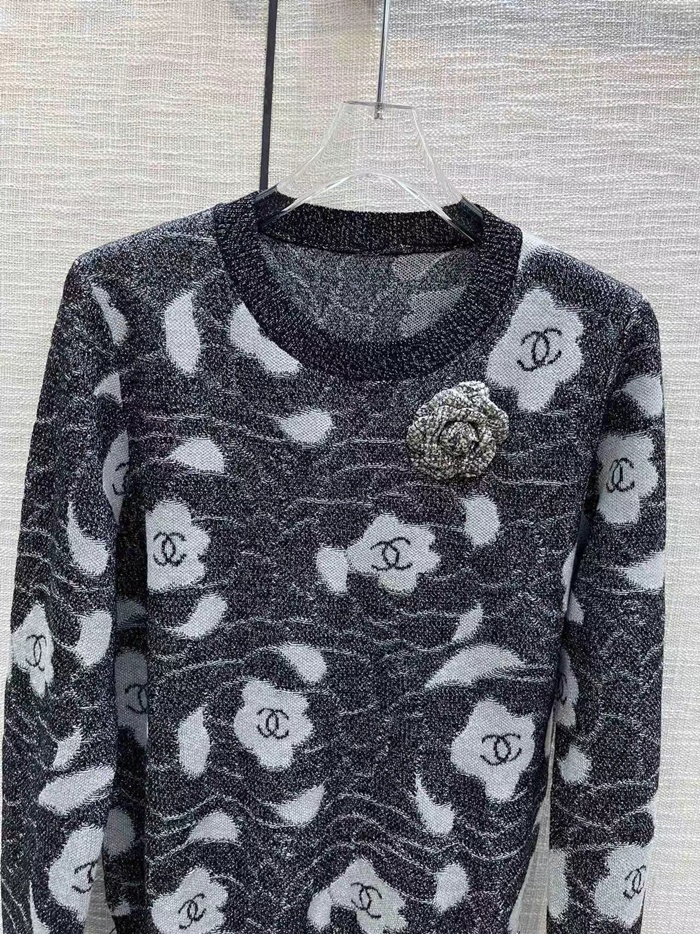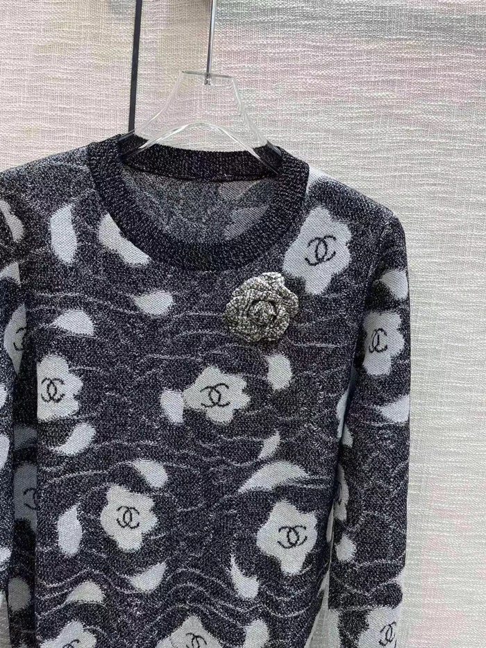 シャネルレディースグレークルーネックセーターh572