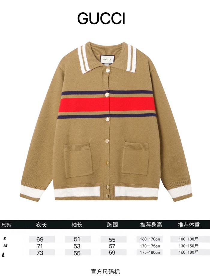 グッチレディースキャメルポロカーディガンu1110