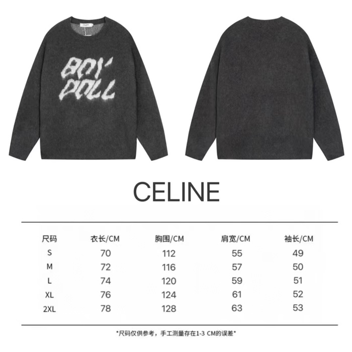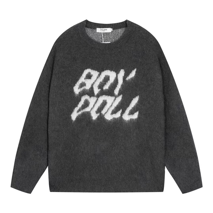 セリーヌメンズクルーネックダークグレーニットe266