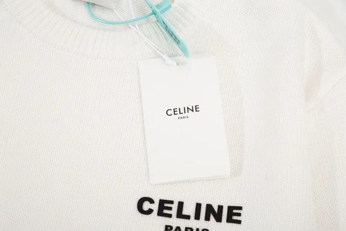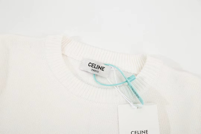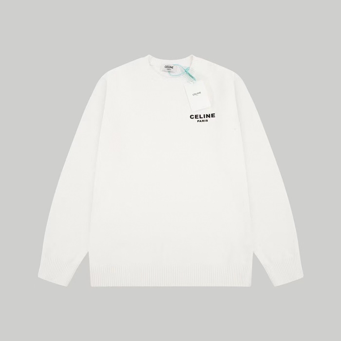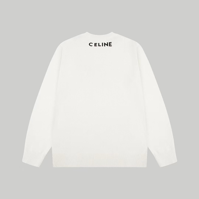 セリーヌメンズクルーネックホワイトニットe270