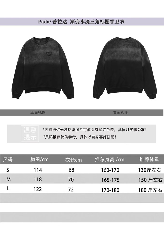 プラダメンズクルーネックブラックスウェットシャツr842