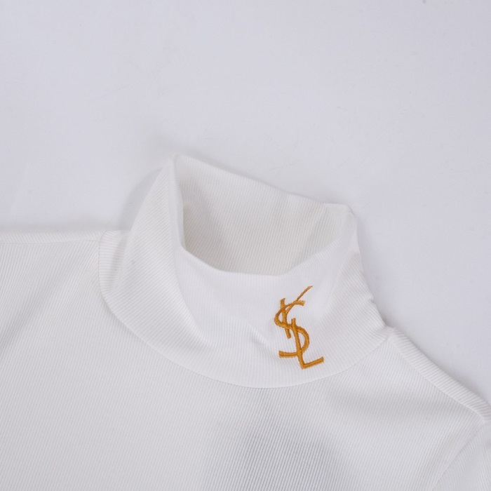 サンローランメンズホワイトタートルネック長袖Tシャツl434