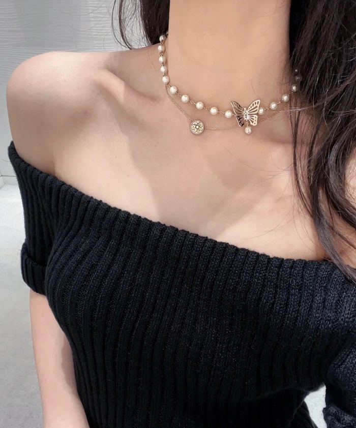 ディオールレディースイエローゴールドネックレスc373