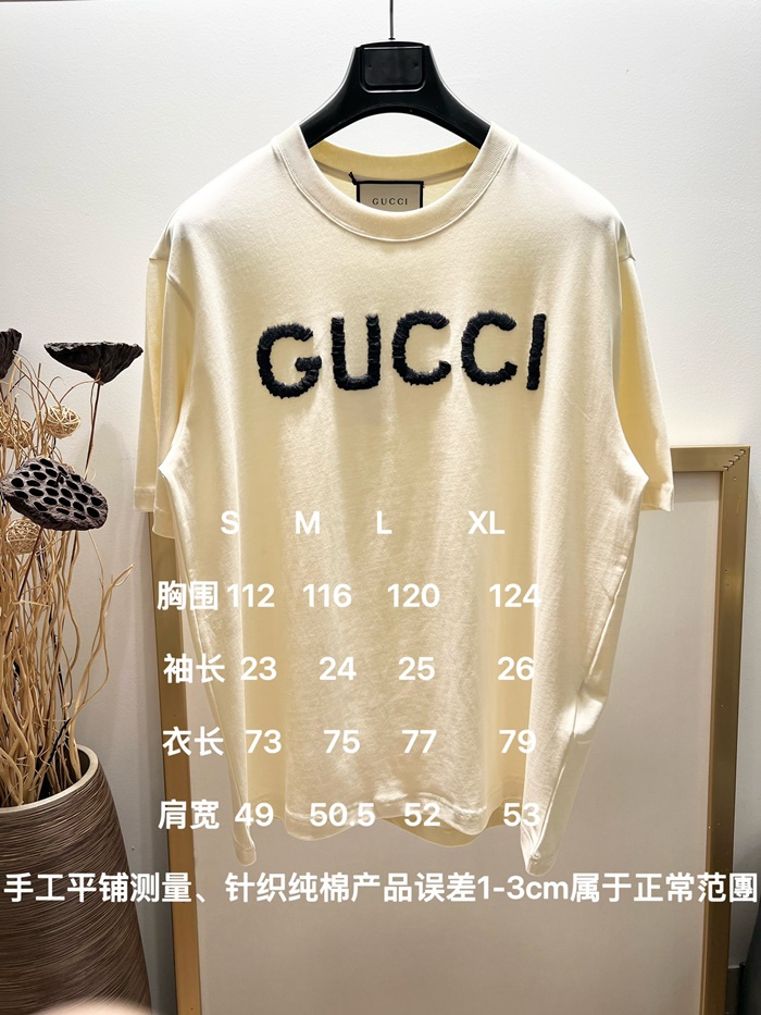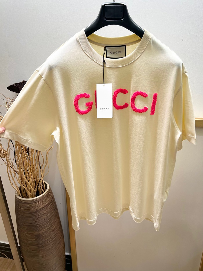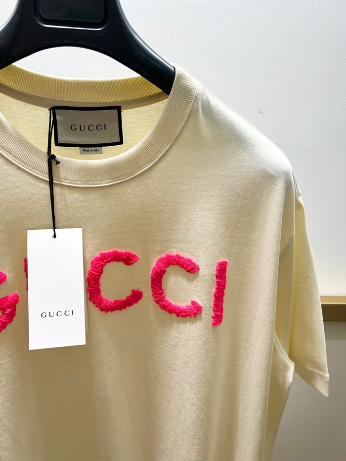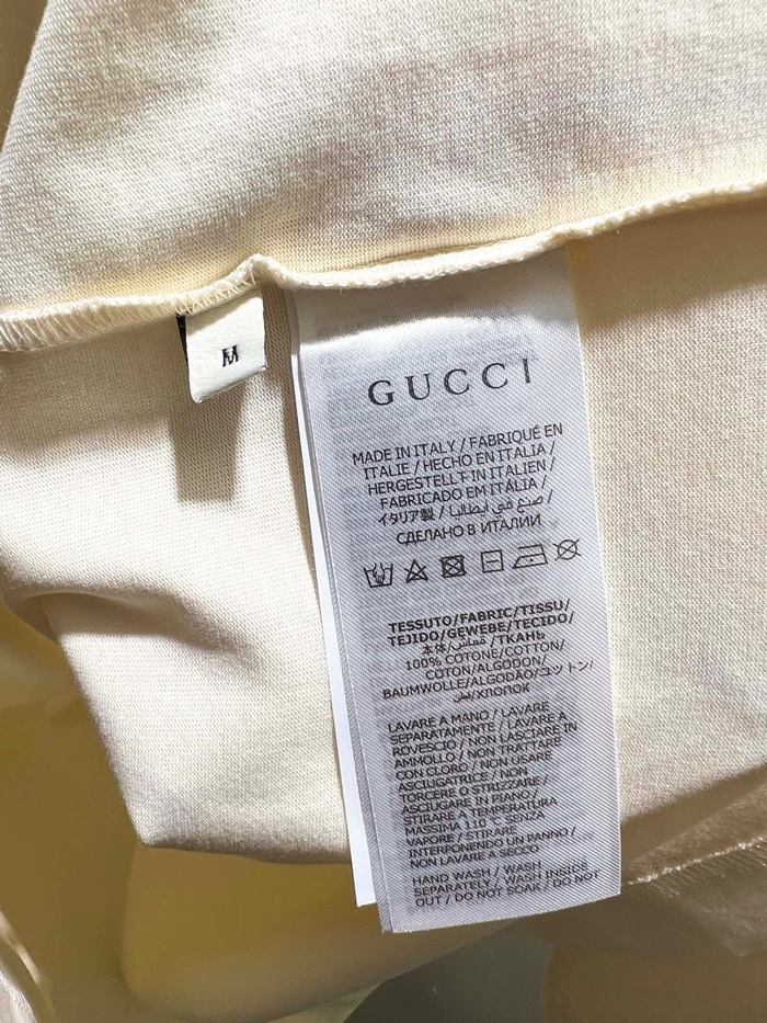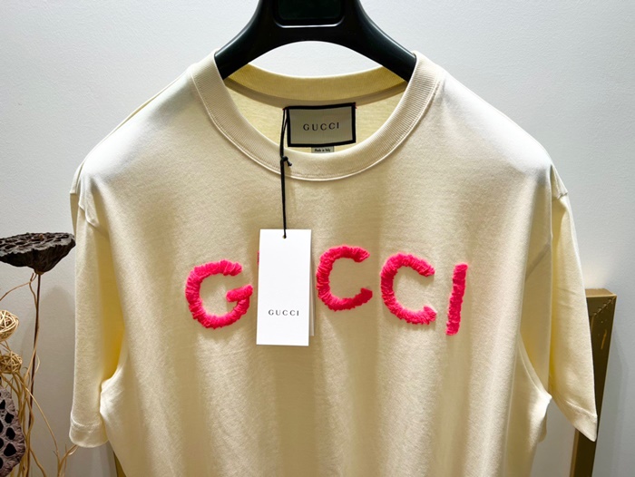 グッチレディースアイボリークルーネック半袖Tシャツu928