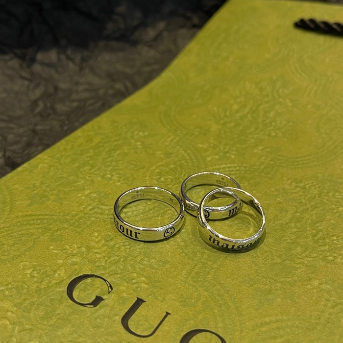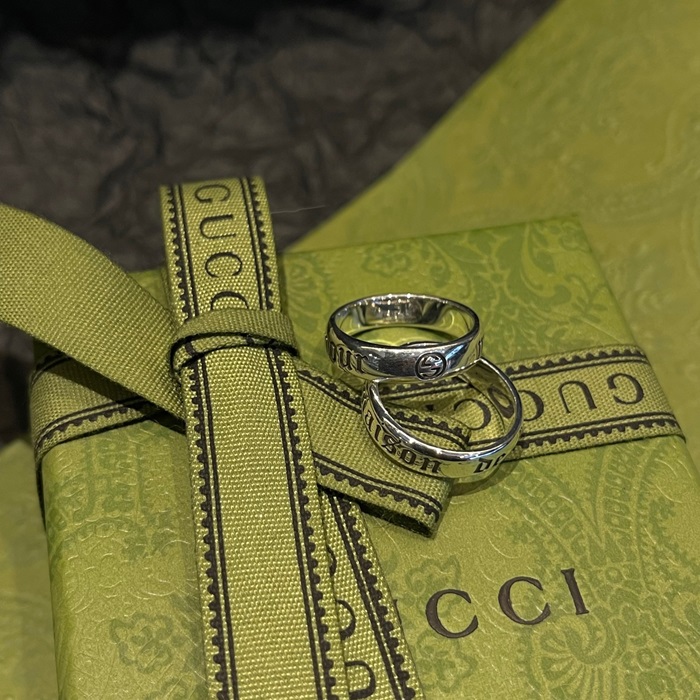 グッチユニセックスホワイトゴールドリングc713