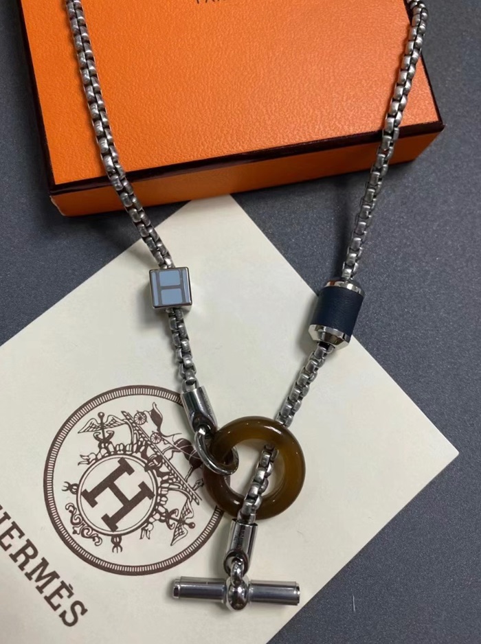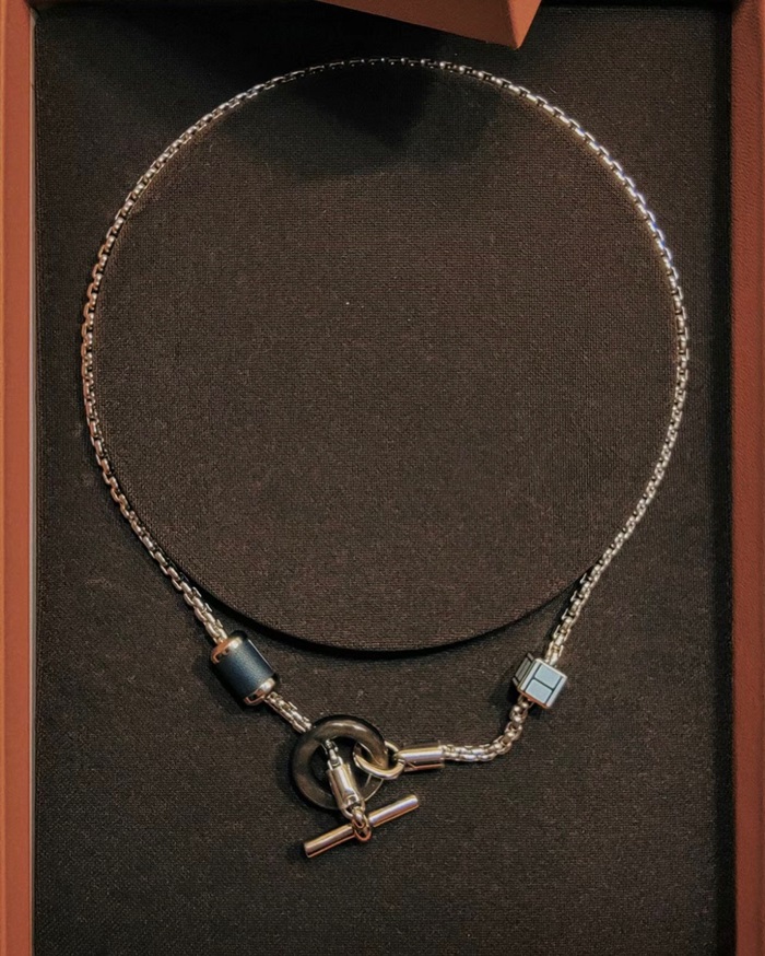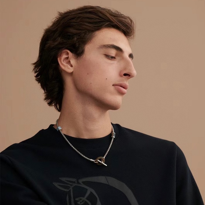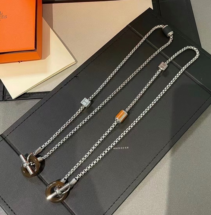 エルメスメンズホワイトゴールドネックレスc725