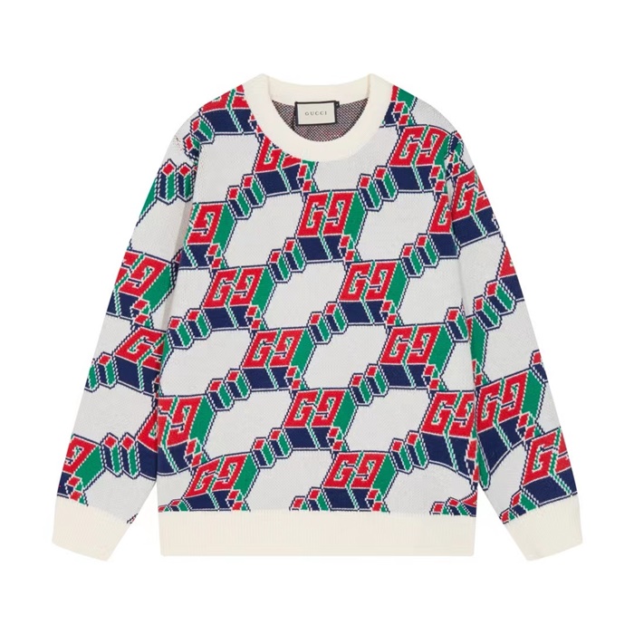 グッチメンズホワイトクルーネックニットu1163