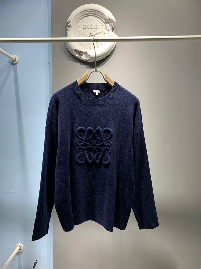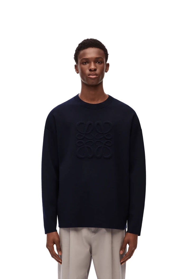 ロエベメンズネイビークルーネックセーターa17