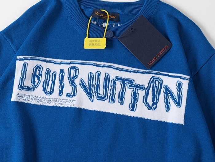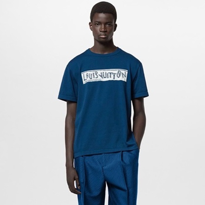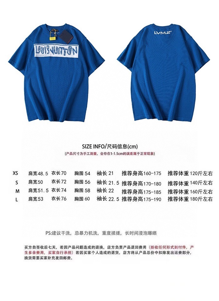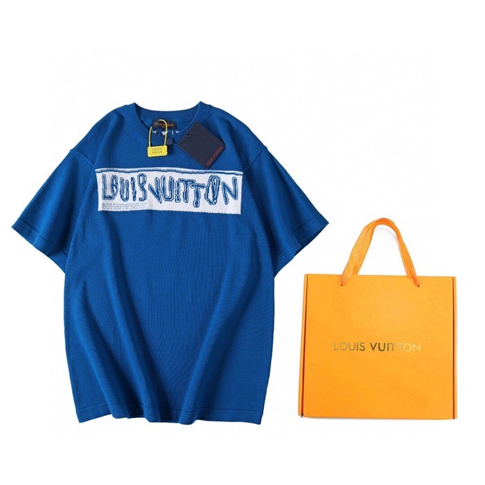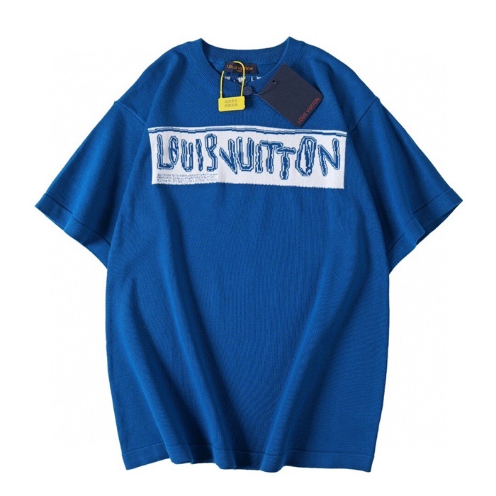 ルイヴィトンメンズクルーネックブルー半袖Tシャツa37