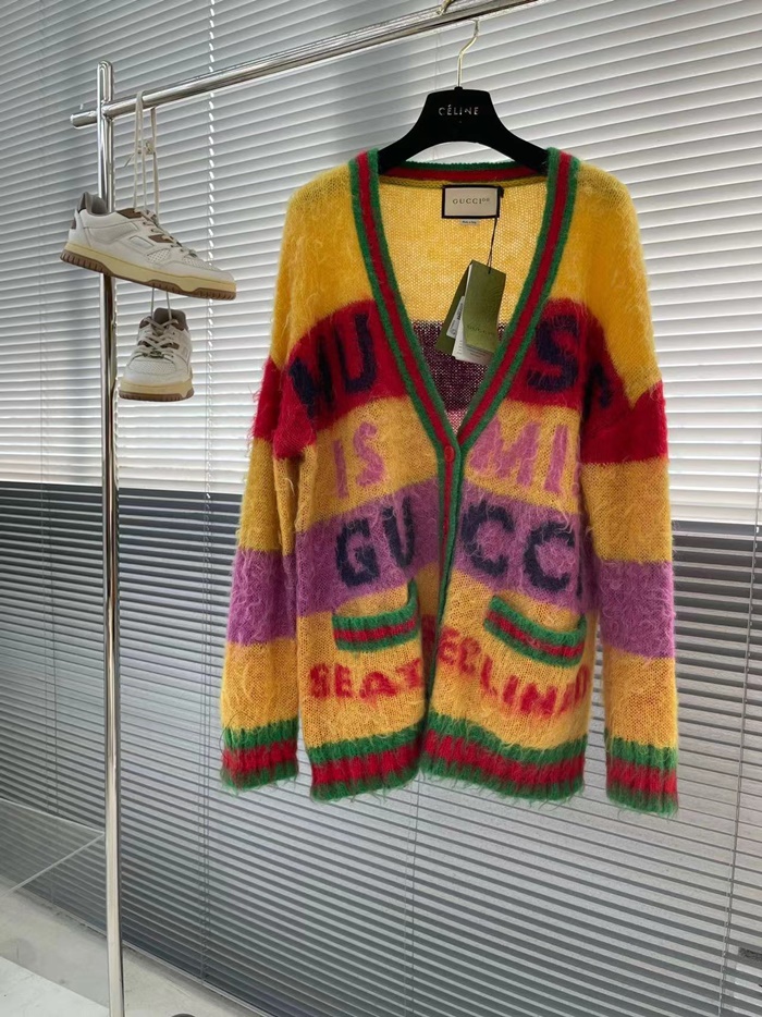 グッチメンズイエローネックカーディガンu1168