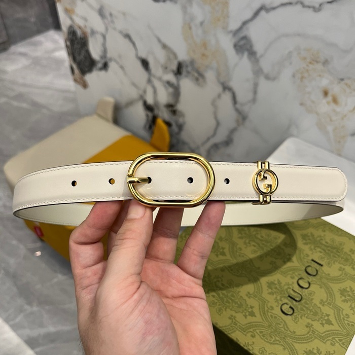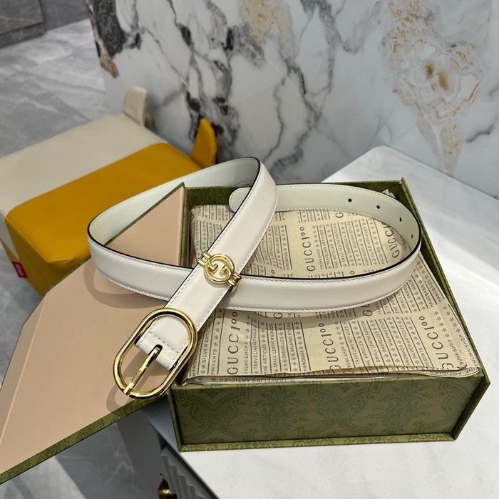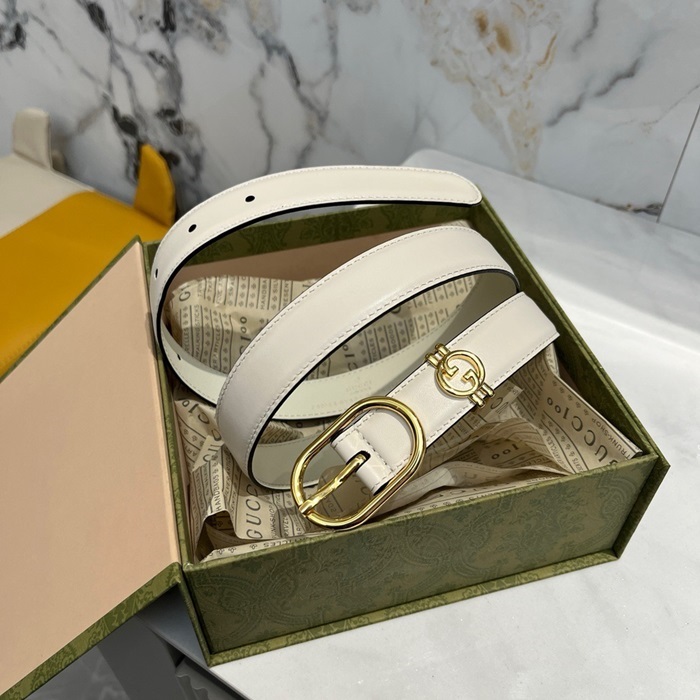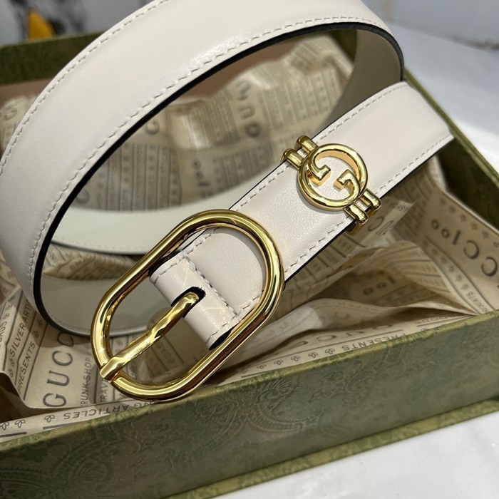 グッチレディースホワイトベルトe14