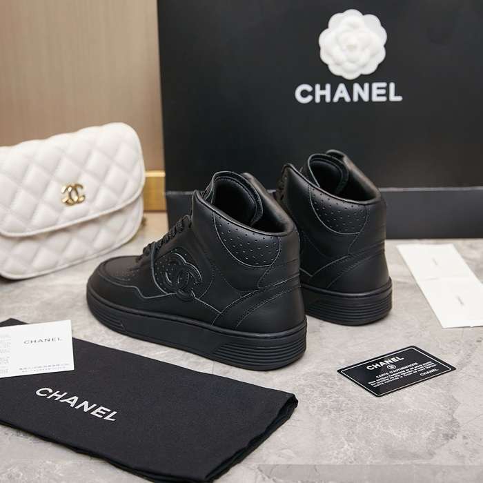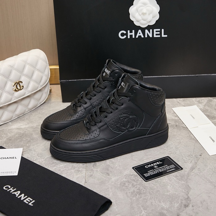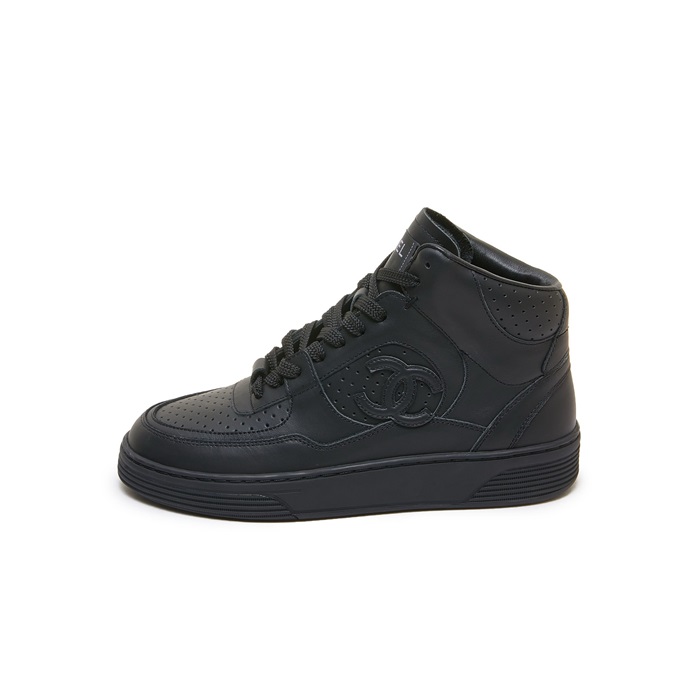 シャネルレディースカーフスキンブラックスニーカーh08
