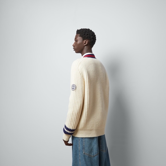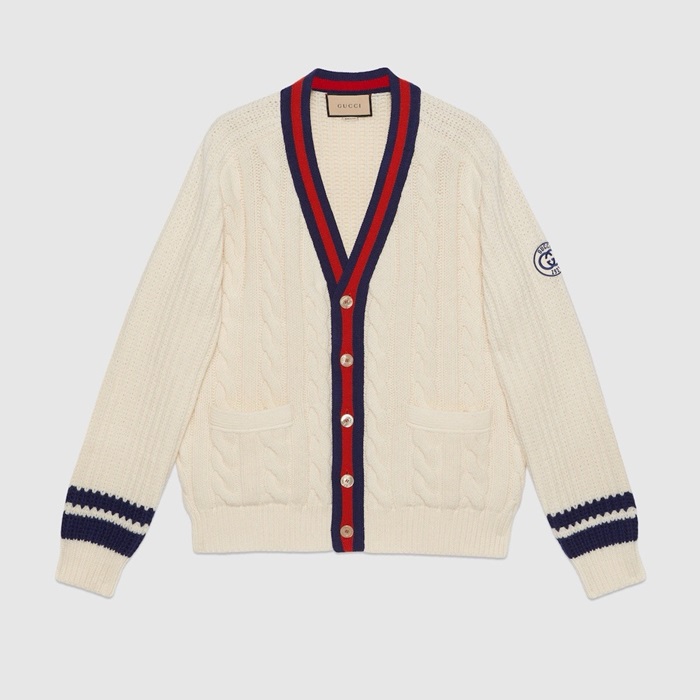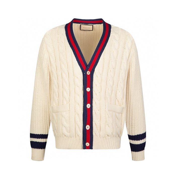 グッチメンズアイボリーネックカーディガンc15
