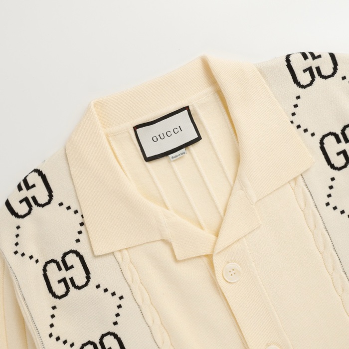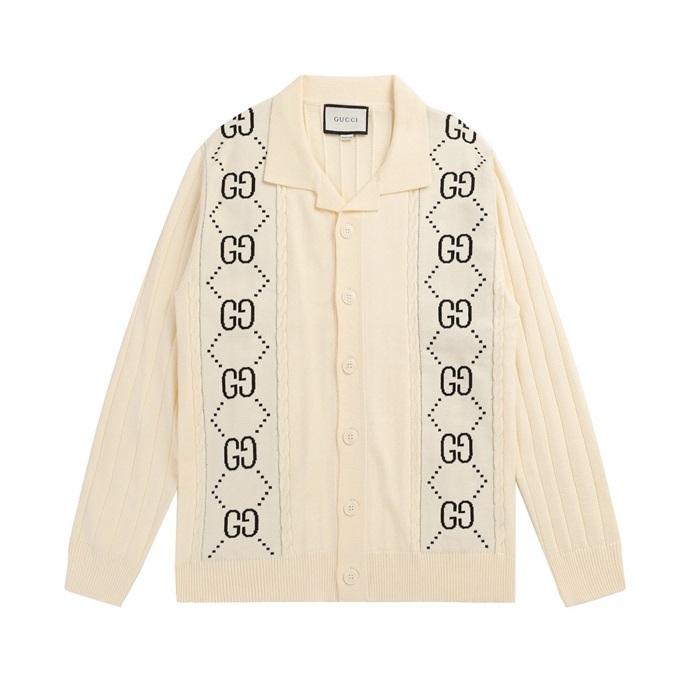 グッチメンズアイボリーネックカーディガンc73