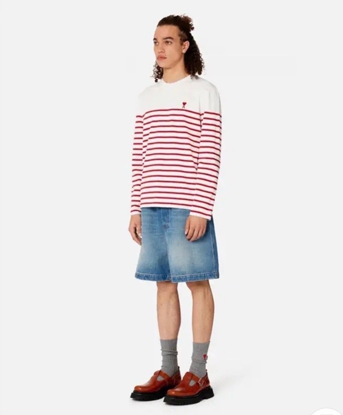 アミメンズレッド長袖Tシャツc143