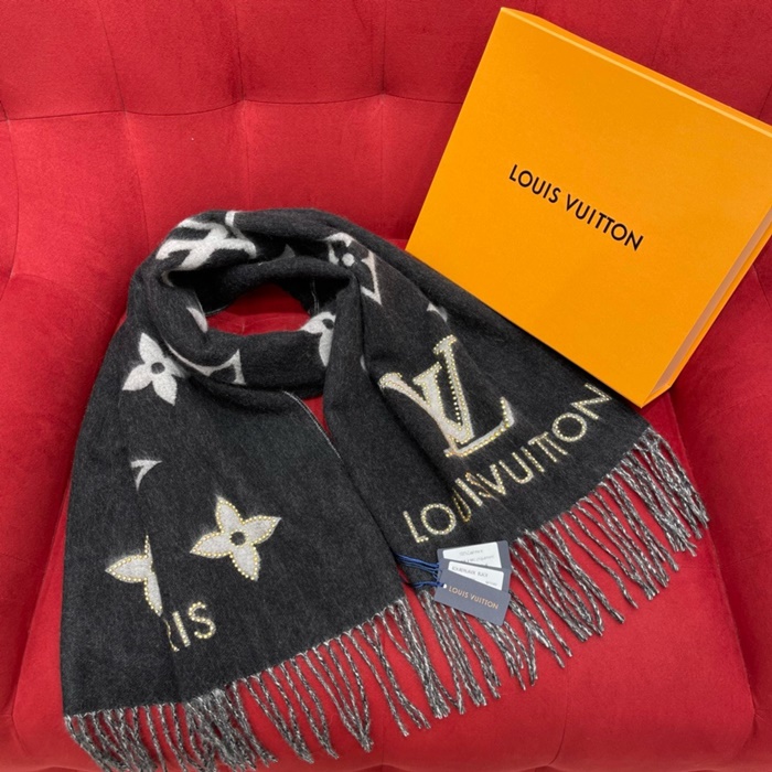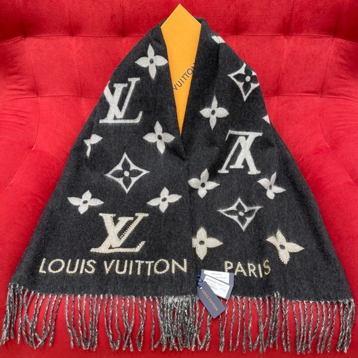 ルイヴィトンレディースブラックマフラーc1613