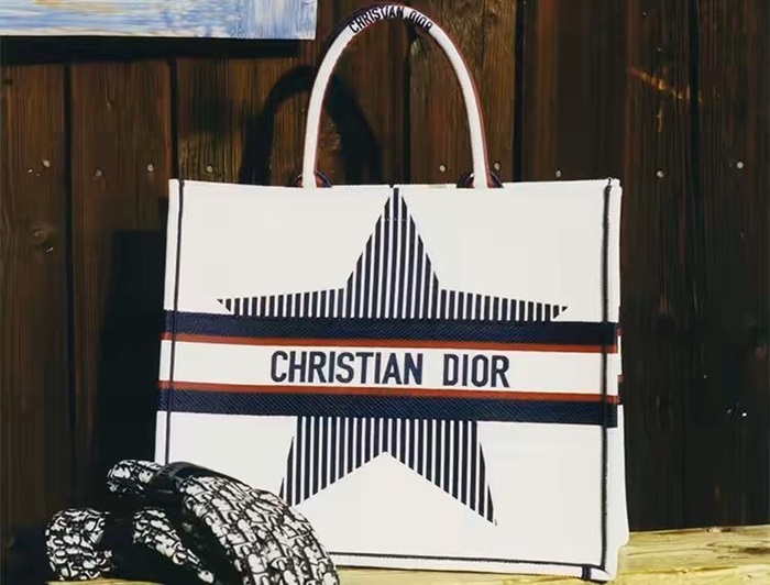 ディオールレディースホワイトブックトートバッグb701