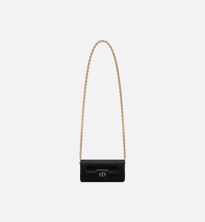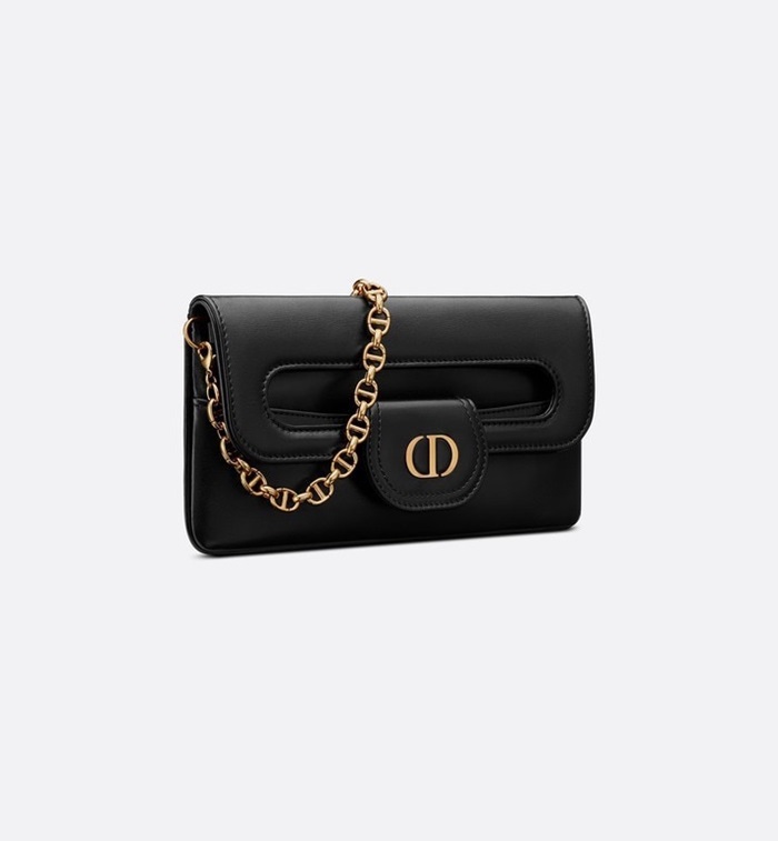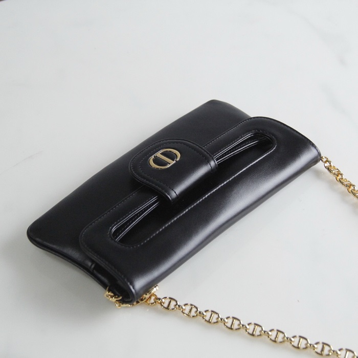 ディオールレディースブラックダブルクラッチバッグb727