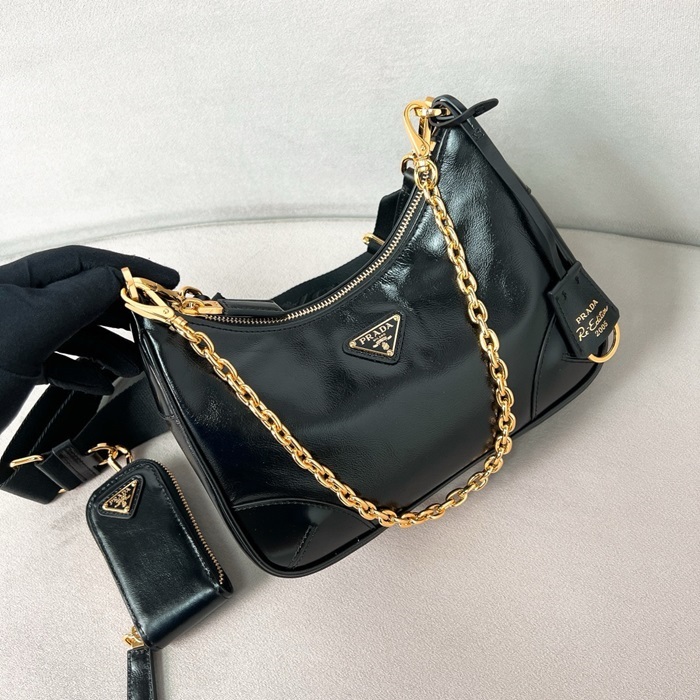 プラダレディースブラックハボバッグb881