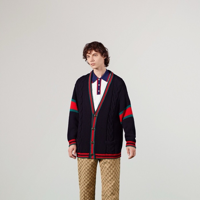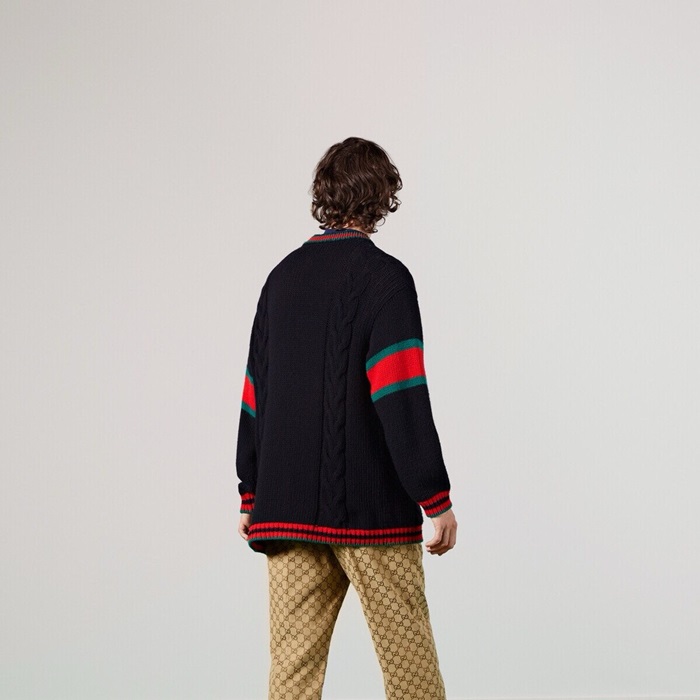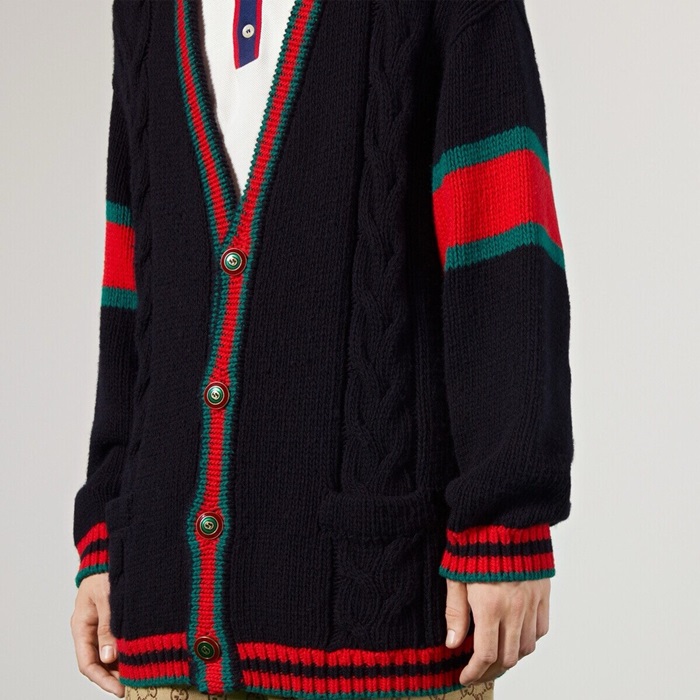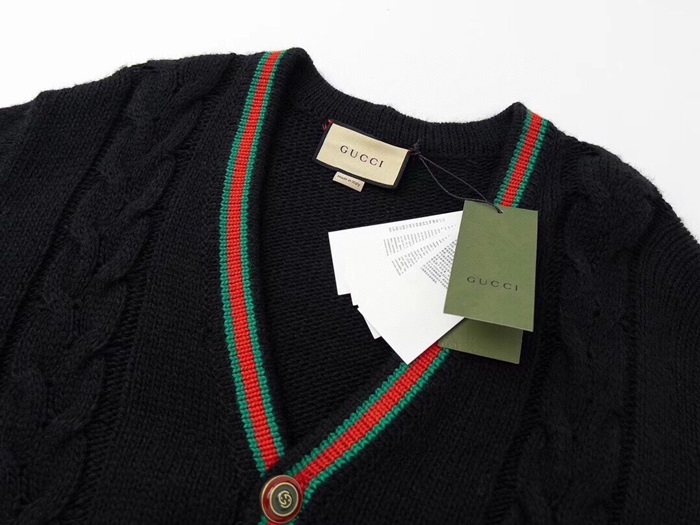 グッチメンズブラックネックカーディガンc195