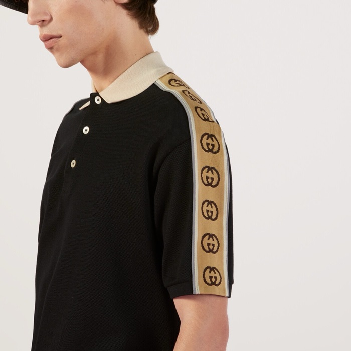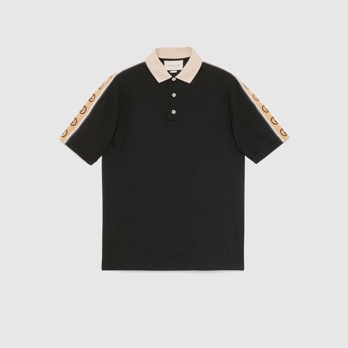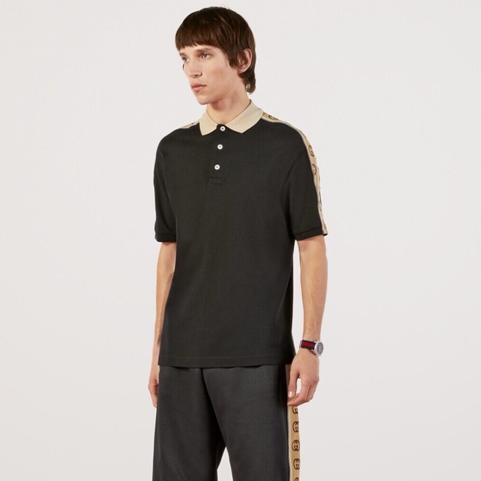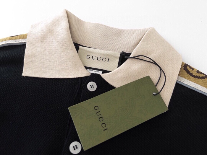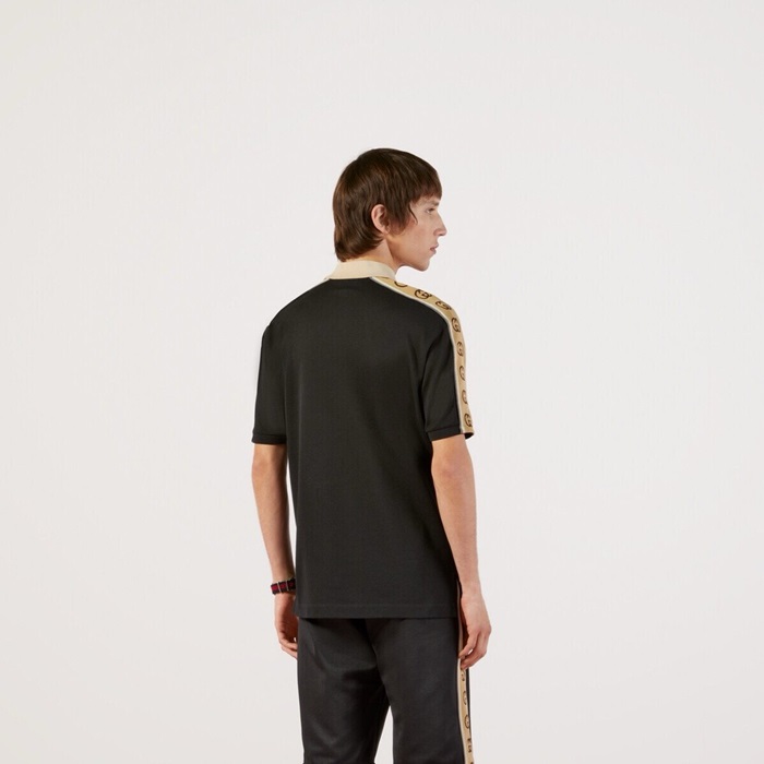グッチメンズブラックポロ半袖Tシャツc219