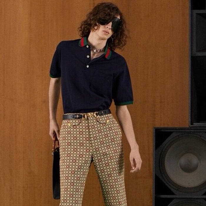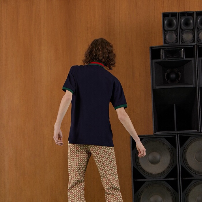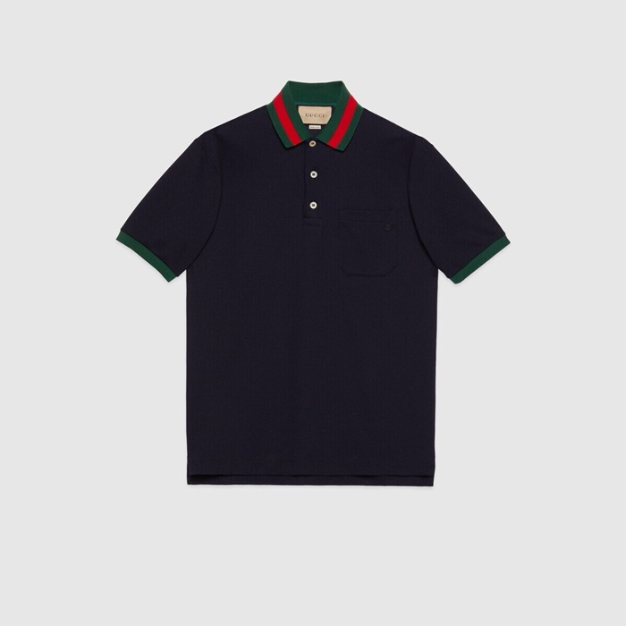 グッチメンズネイビーポロ半袖Tシャツc221