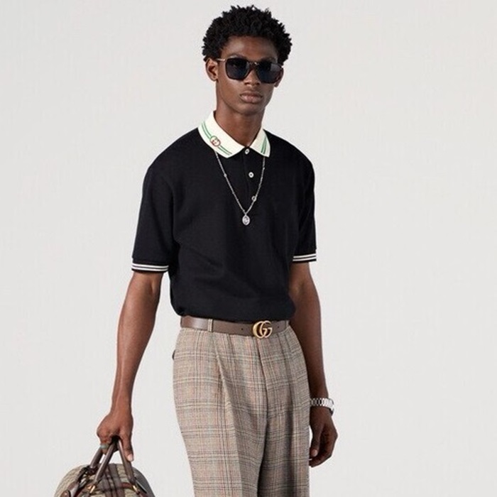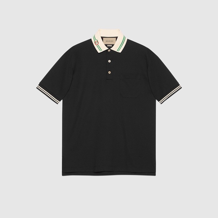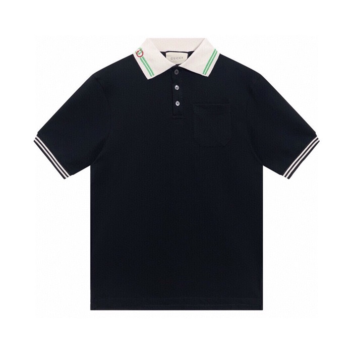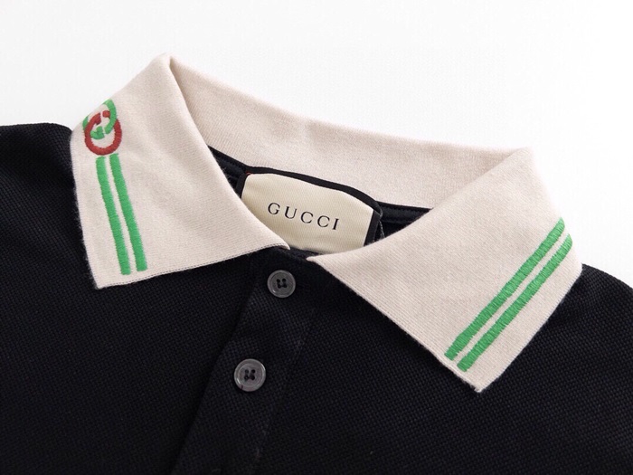 グッチメンズブラックポロ半袖Tシャツc224