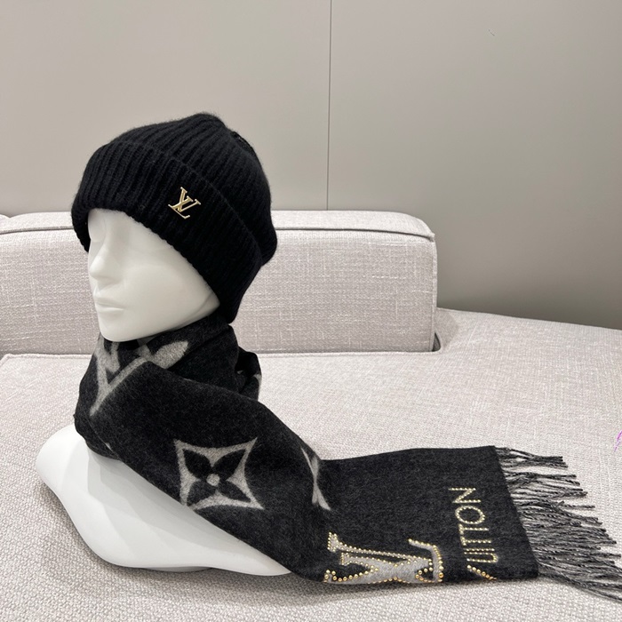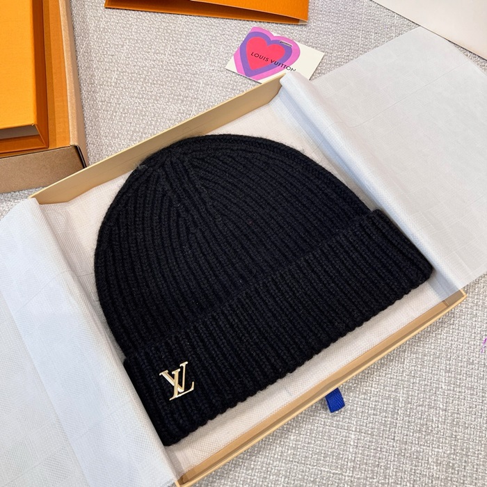 ルイヴィトンユニセックスブラックビーニーc1708
