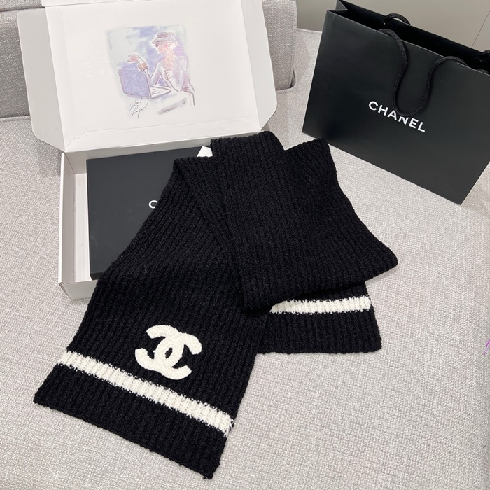 シャネルレディースブラックマフラーh1731