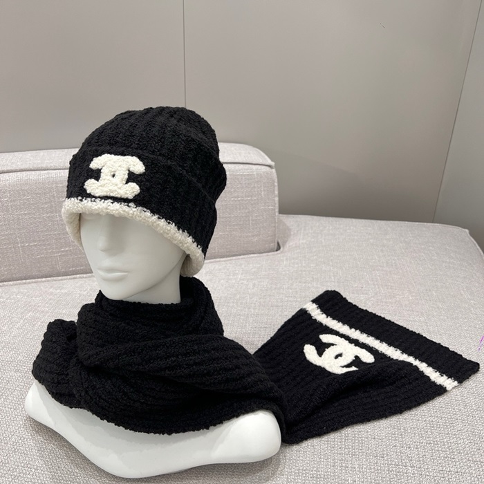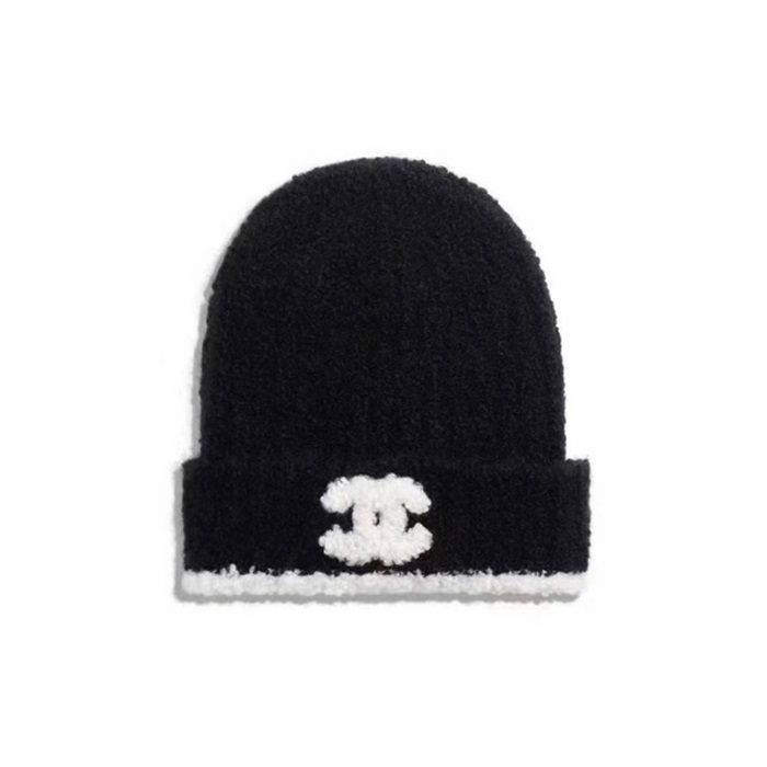 シャネルユニセックスブラックビーニーc1732