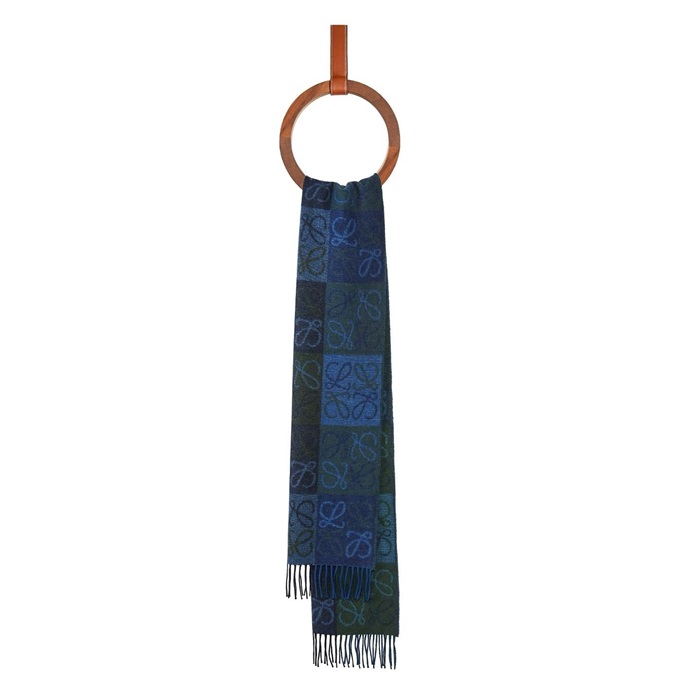 ロエベユニセックスブルーマフラー-c1737