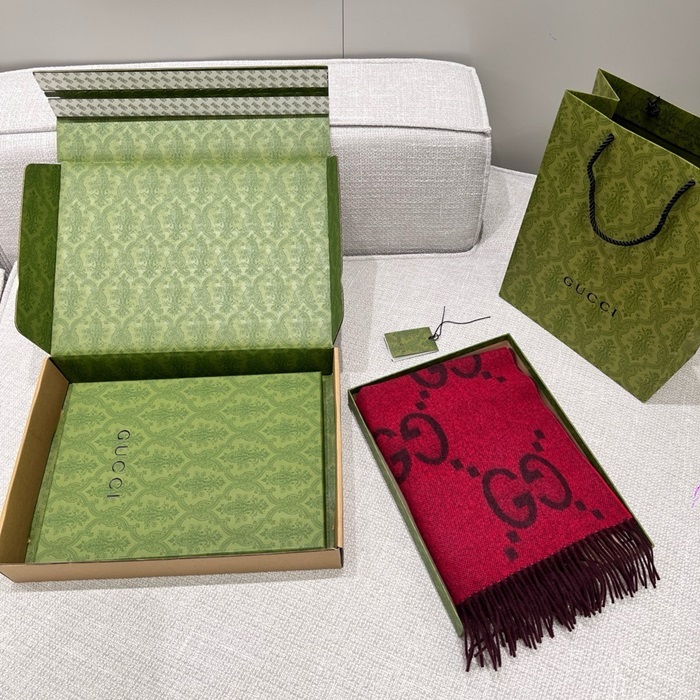 グッチレディースレッドマフラーc1762